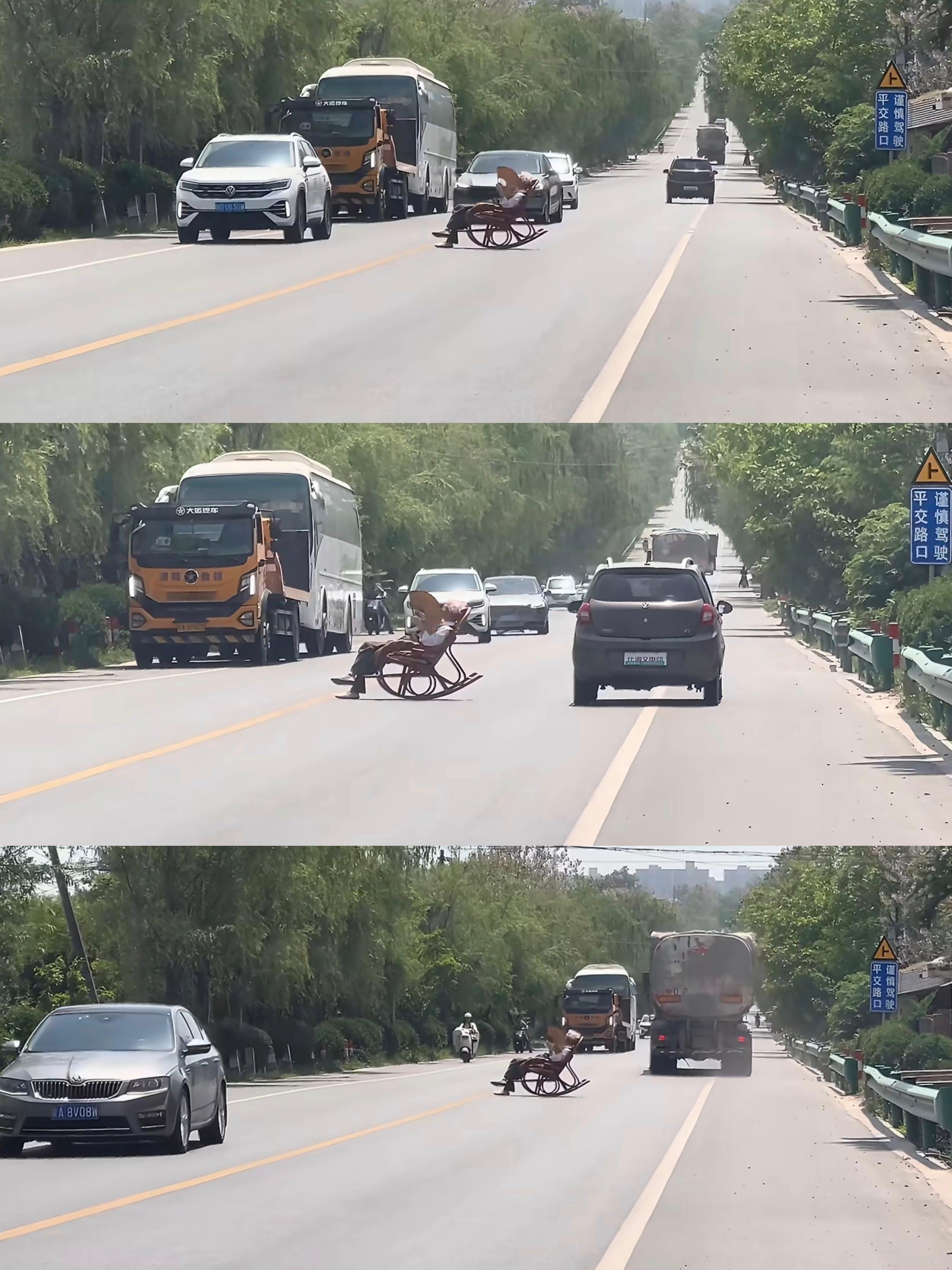 把躺椅摆马路中间晒太阳,这么逆天吗....