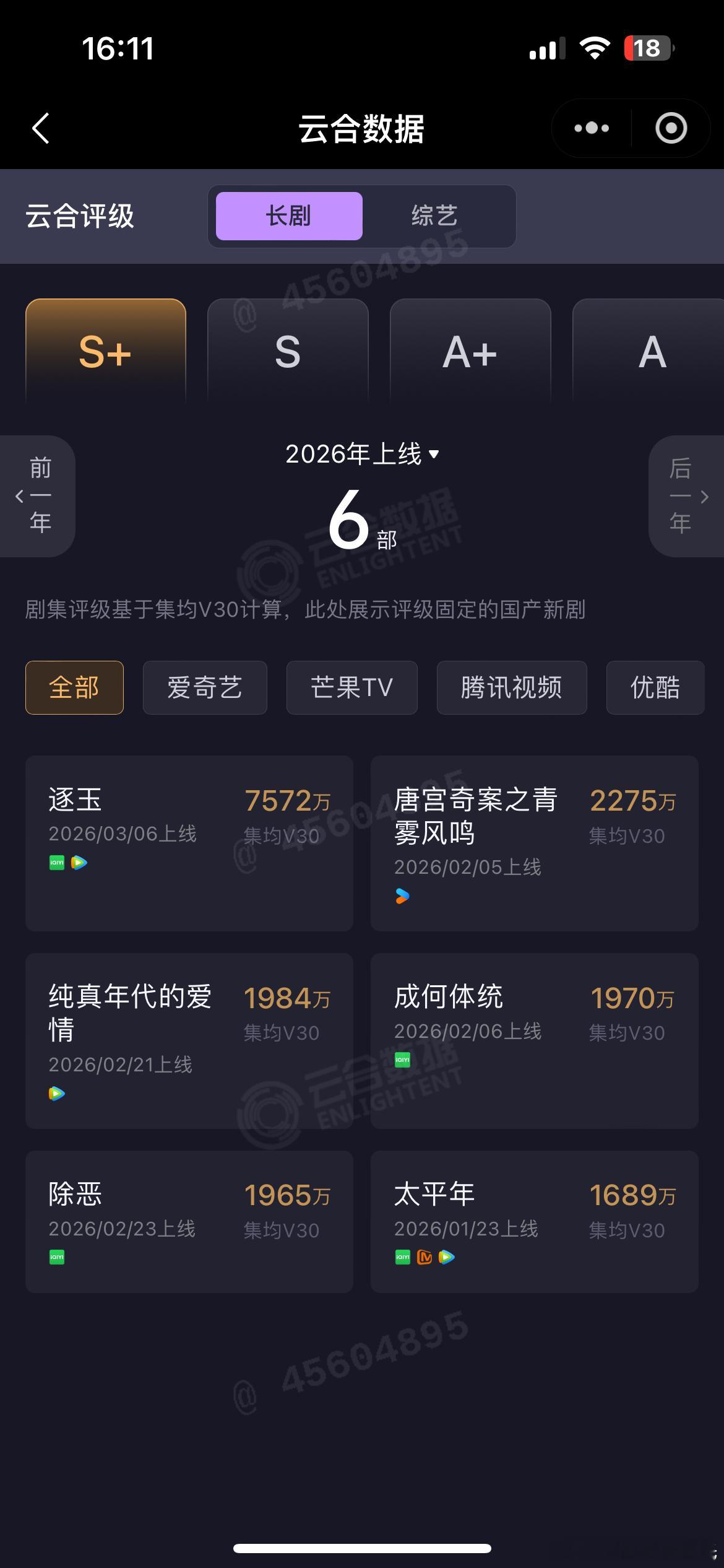张凌赫、田曦薇(平)逐玉 云合集均V30固定,7572万
