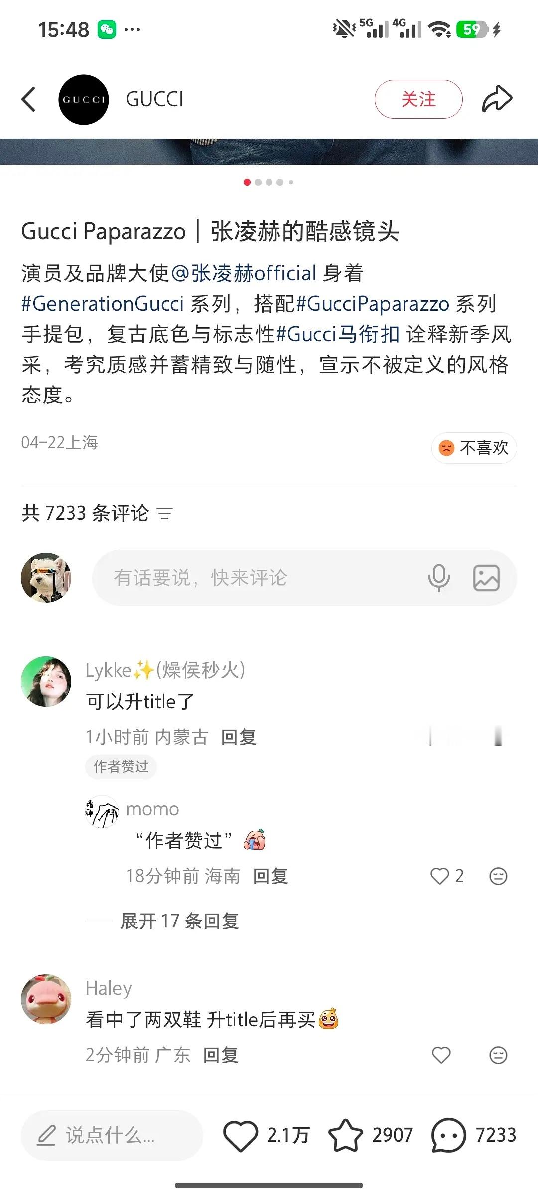 gucci点赞给张凌赫升titlegucci点赞了给张凌赫升title的评论,是不是好事将近啊gucci点赞了给张凌赫升title张凌赫平台认可度