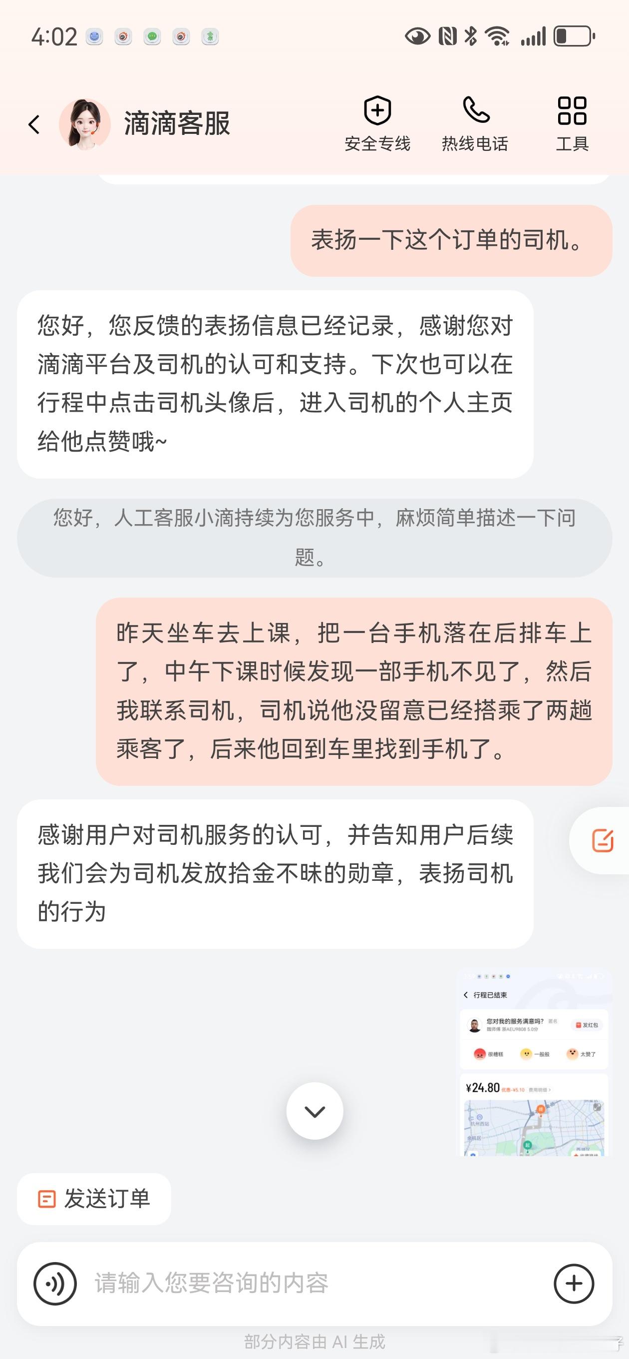 真心建议所有人,手机一定要开定位分享!关键时刻能救一机命昨天打车去浙大上课,不小心把m70pro落在滴滴车上,直到下课才发现手机不见了。立刻打开定位,确认手机位置,急忙联系司机师傅。师傅说中途他又接了两单,现在车子在充电,他已经下车去吃饭午休了,等他晚点回到车上帮忙寻找,让我等消息。但手机里全是重要资料,根本安心不下,我是一刻也坐不住,直接打车直奔定位位置。