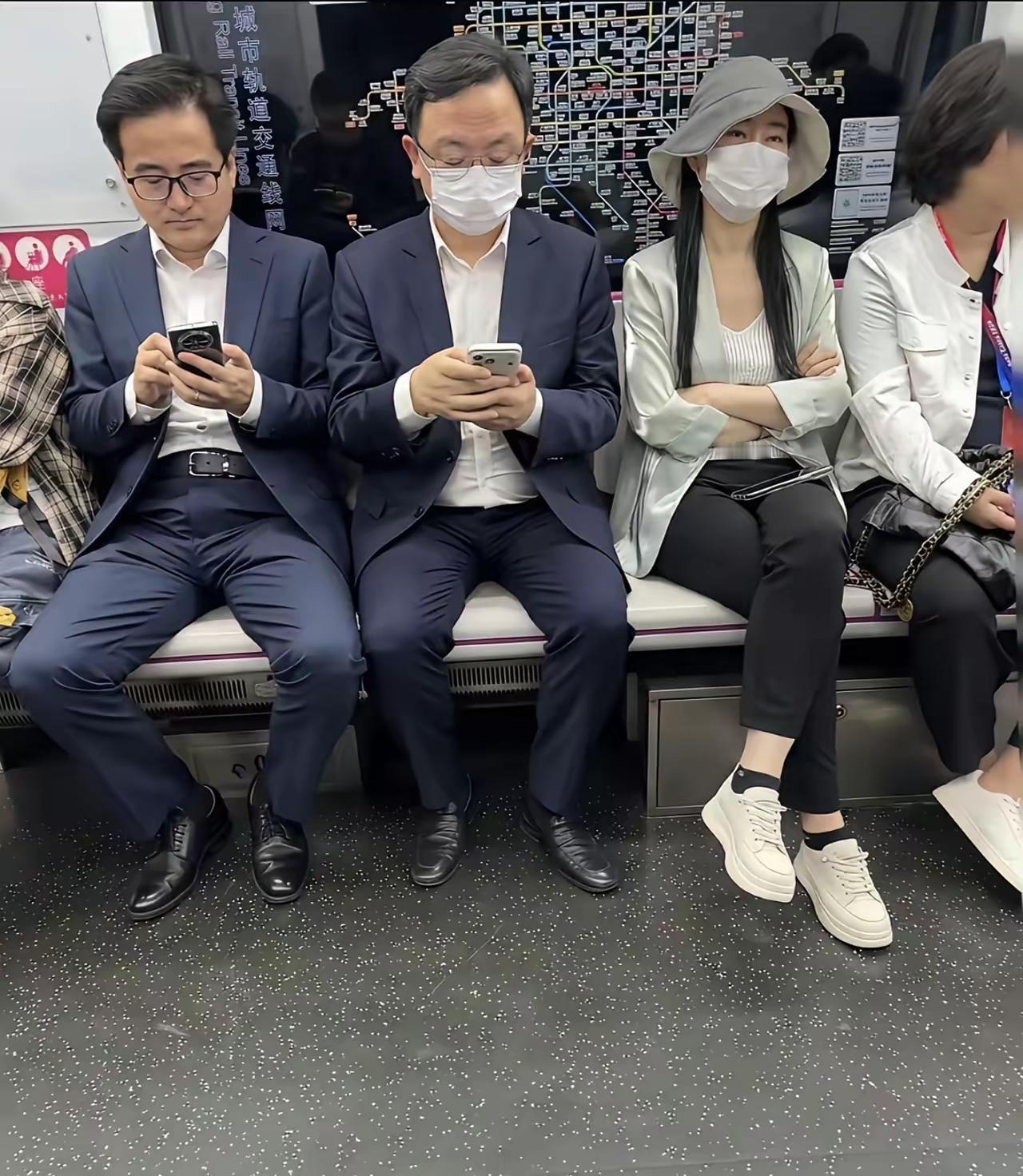 不懂就问:照片中这个戴帽子和口罩,双手交叉放在胸前的女士是谁? 她能坐在比亚迪公司老板与老板娘中间,应该不是一般的人物!