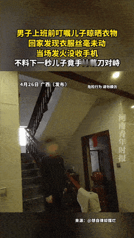 真的后怕!广西,一男子上班前千叮咛万嘱咐儿子晾晒衣物,结果,回到家一看儿子在玩手机,衣物却丝毫未动。一气之下将儿子手机没收。没成想下一秒,儿子竟然手持菜刀对峙!网友:“棍棒之下出孝子自古至今不变!” 这位父亲在出门上班前,特意千叮咛万嘱咐,让儿子在家顺手把洗好的衣服晾晒一下。 结果等他忙碌了一整天,带着满身疲惫回到家时,推开门看到的却是衣服还在盆里堆着,而儿子正心安理得地瘫在沙发上玩手机。 看着眼前这一幕,父亲的火气“噌”地就上来了。劳累了一天的委屈加上对孩子懒散的愤怒,让他直接冲过去没收了儿子的手机。 被没收手机的儿子并没有表现出愧疚或顺从,反而瞬间“黑化”。他竟然冲进厨房,抄起一把菜刀跑出来,面对面对着男子! 看孩子的眼神,哪里像是在看爸爸,简直像是在看仇人。画面在这一刻定格,评论区炸开了锅! 有网友评论,游戏害死人,特别是竞技类游戏。小孩子控制不住脾气,一死了就各种发脾气,我那个侄儿就是天天玩和平精英,才10多岁驼背,眼睛无神,暴躁只要他玩游戏被人打死了就发脾气,怒吼 还有网友评论,这种半大小子真有可能,他们不计后果,心智还不健全 老话说“养不教父之过”,这种就是平时太宠了,事出来了突然下猛药,不能怪孩子,家长做事情就没有方法。习惯养成是需要3至8周的,很多事情需要顺序渐进的处理,从观念认知开始,包括大人一样需要改变。 所以,手机游戏真的是害人啊!特别是年轻一代!国家必须重视起来! 对此,大家怎么看呢?