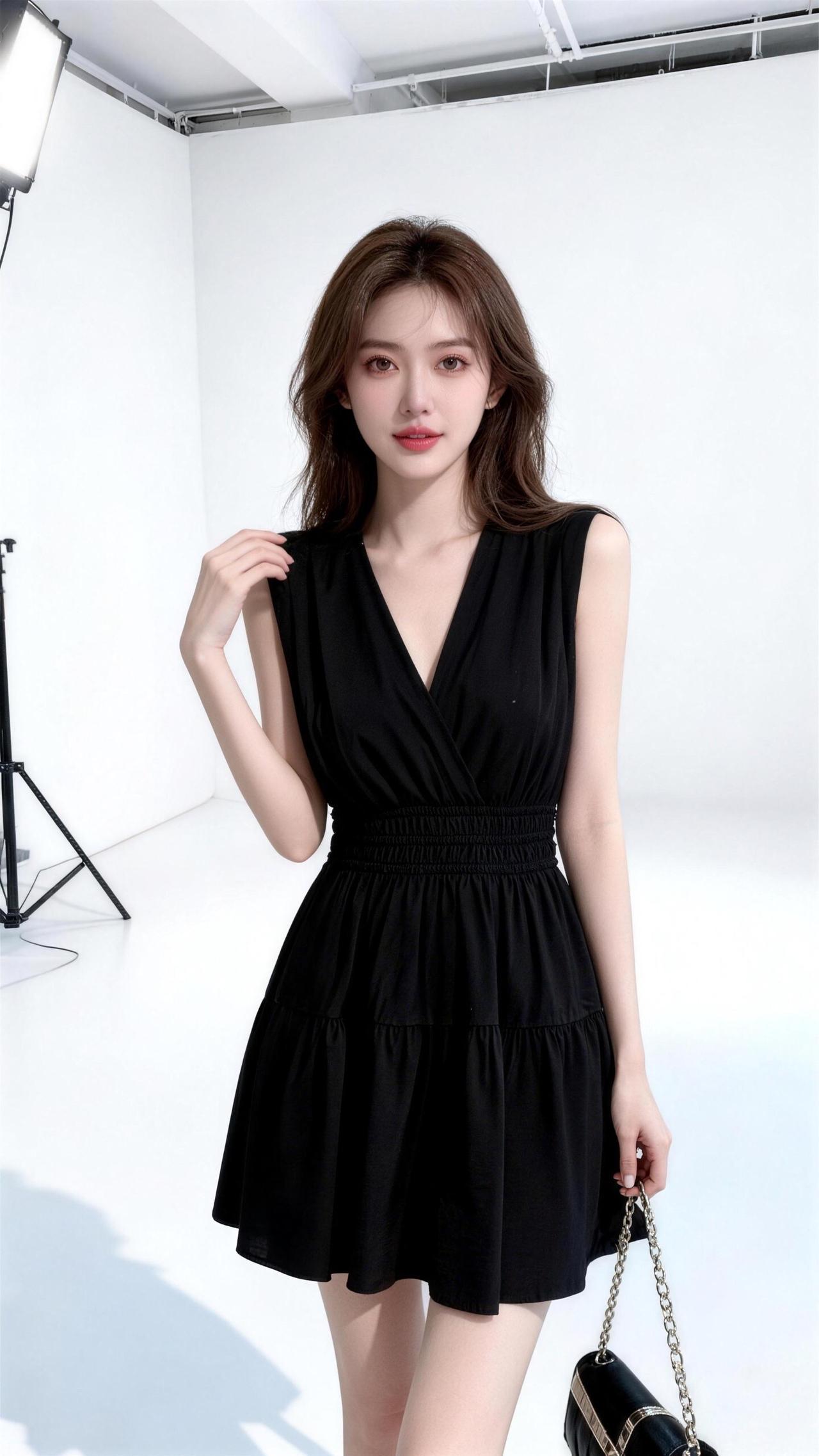 小辣妹穿搭 黑色蝴蝶结连体裙 小黑裙谁穿谁好看