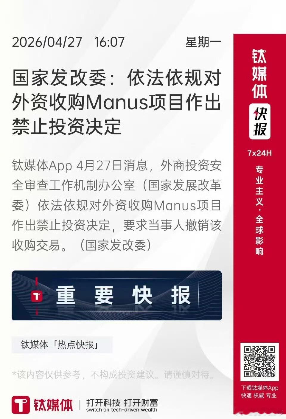 禁止外资收购Manus项目中国的数据源,肯定会影响中国安全人家看上的,并不一定是