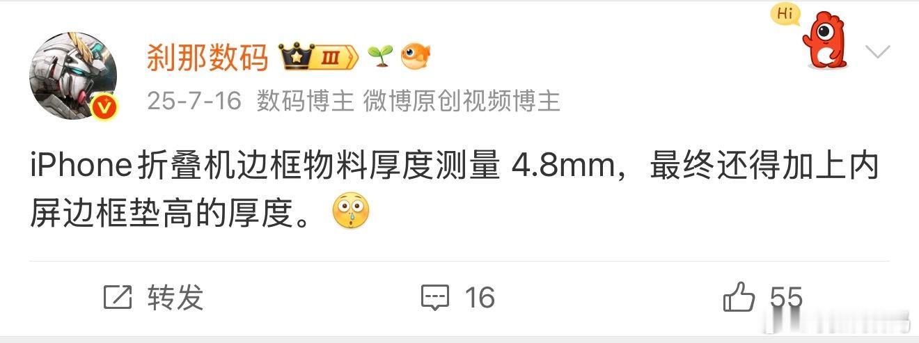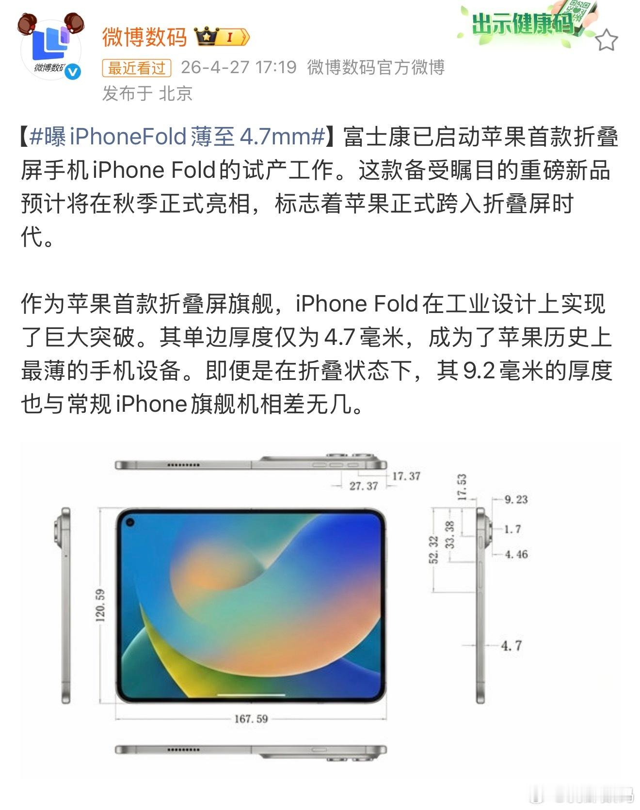 曝iPhoneFold薄至4.7mm比我去年的消息薄了0.1mm