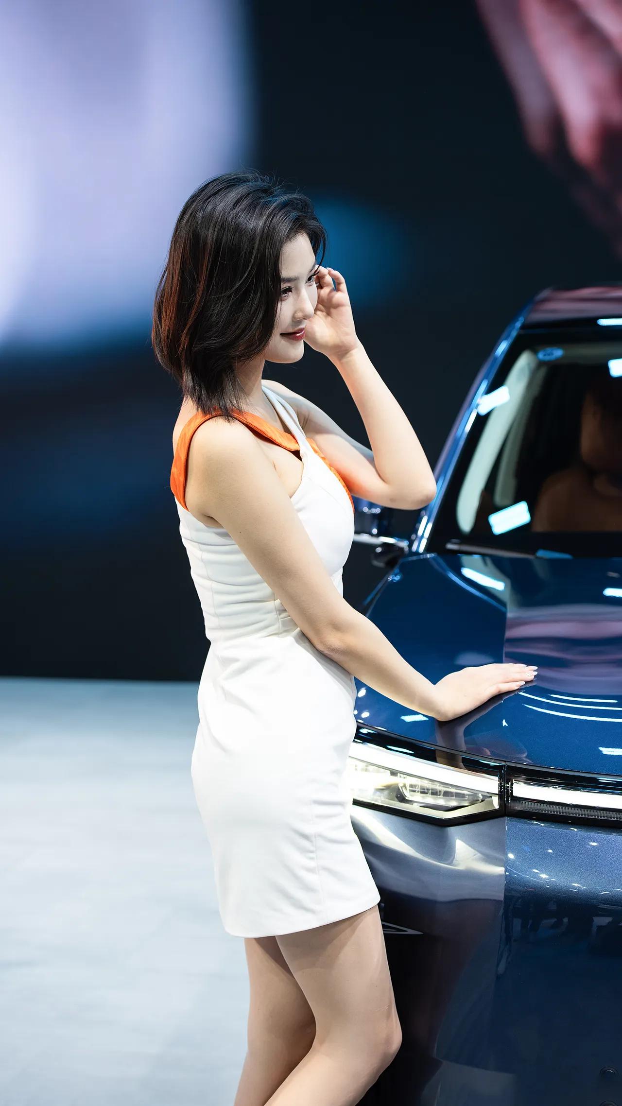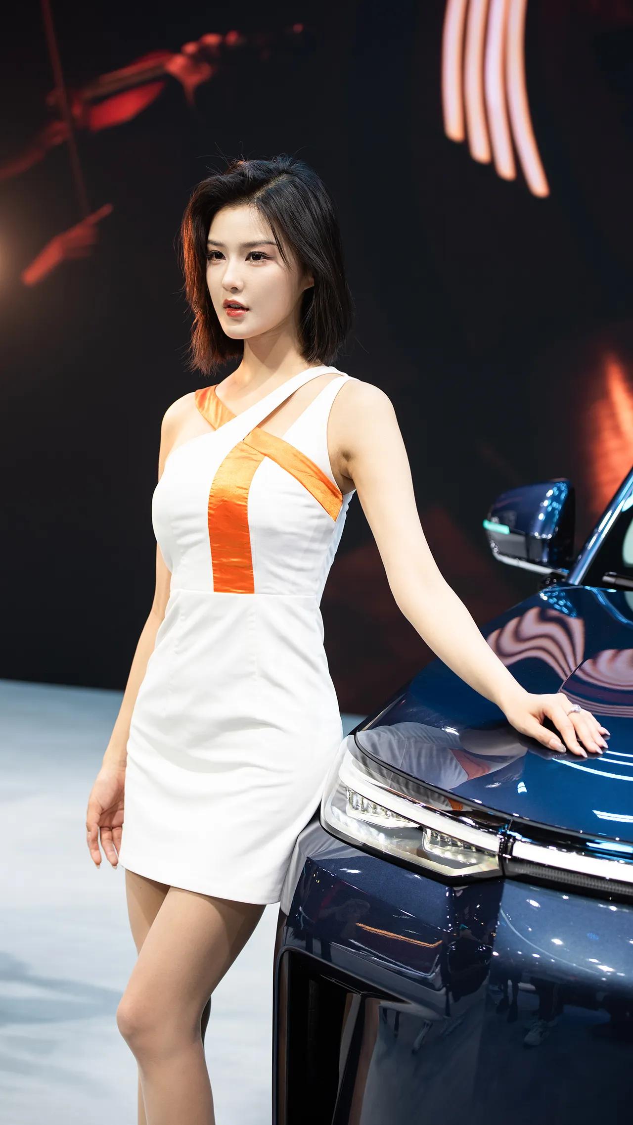 优雅车模秀,性感连衣裙,车旁迷人姿态,闪耀珠宝配饰 车展模特[给力]