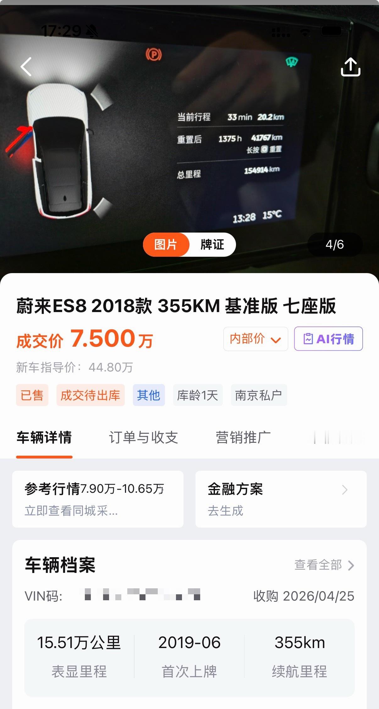 2019年上牌,15万公里的蔚来ES8,7万5成交。什么,电池衰减怎么办?蔚来换电,不用考虑电池衰减。