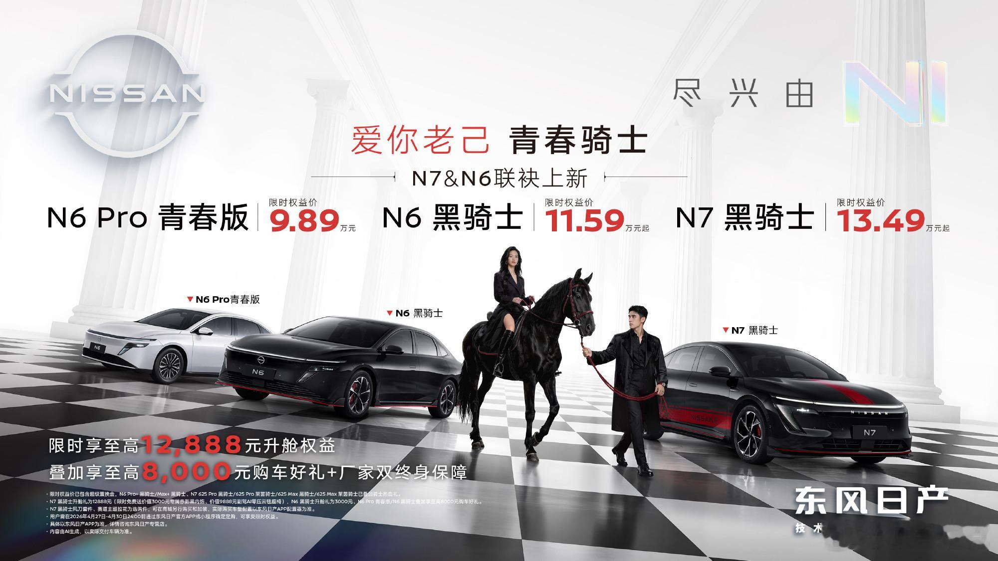 东风日产今天一口气上了三款车,分别是N6 Pro青春版、N7骑士版、N6骑士版,覆盖家用入门与个性运动两大需求。
