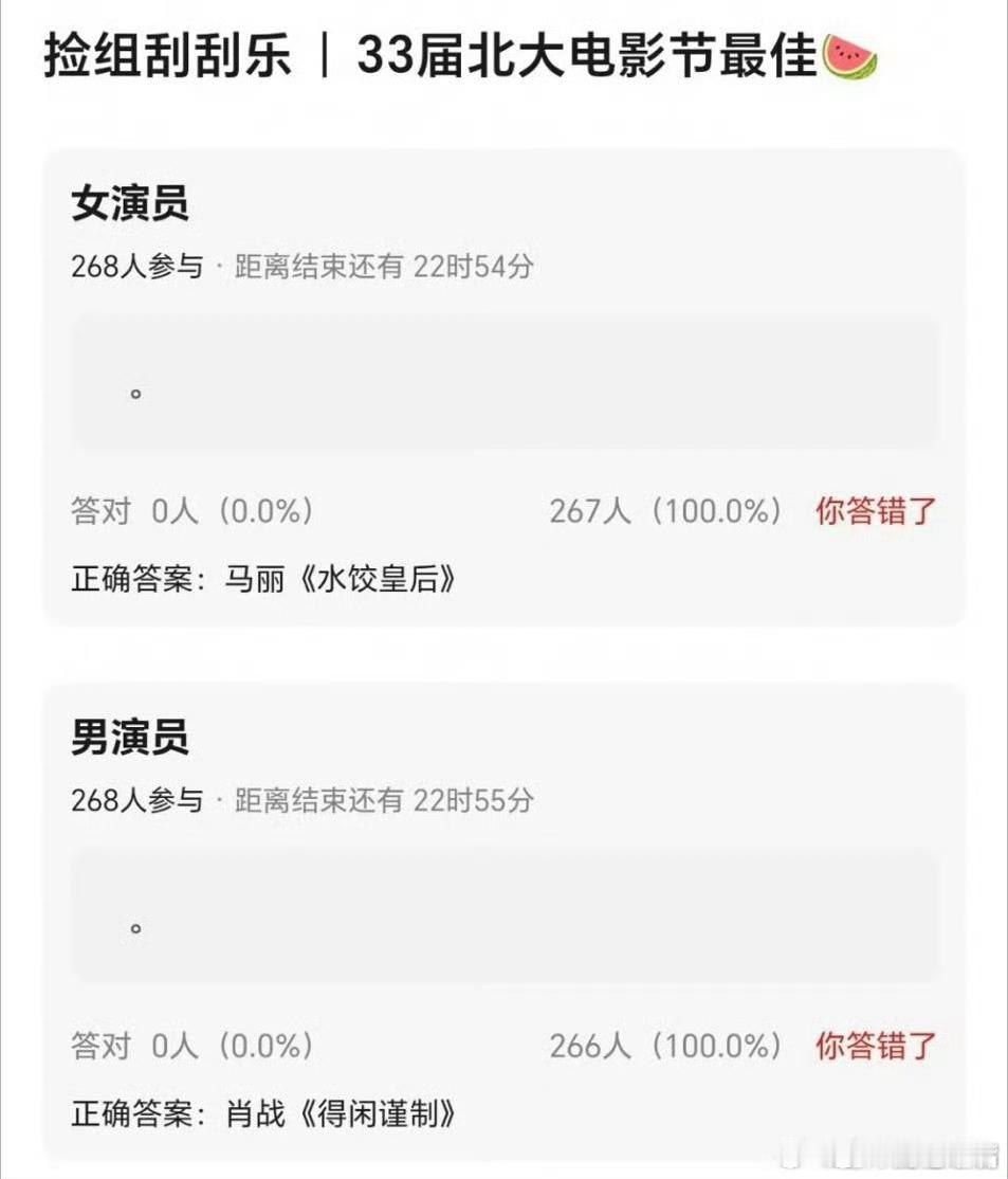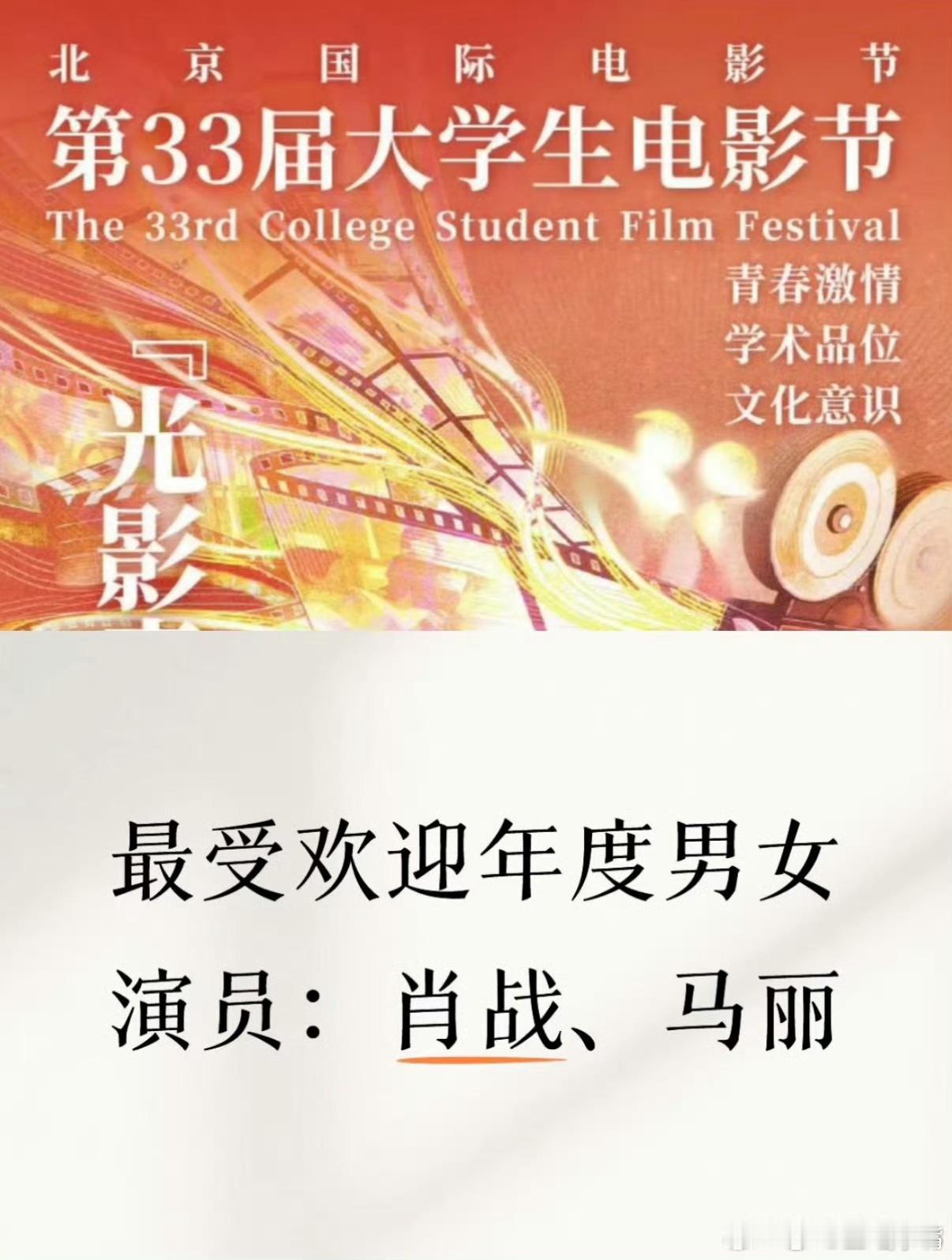 第33届北京大学生电影节吃瓜🍉不信🍉最佳男演员:肖战《得闲谨制》最佳女演员:马丽《水饺皇后》