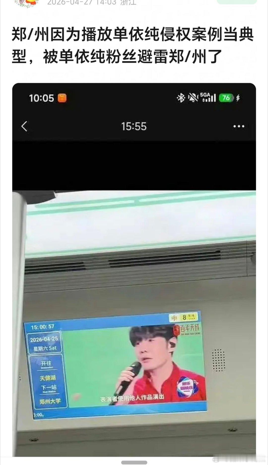 单依纯郑州演唱会打折老师,别逗我了吧🤦♂️郫县热议:郑州因为播放单依纯李荣浩侵权案例当典型,被单依纯粉丝壁垒了🥲我看图看的感觉不认识字了,我头一次听说粉丝能壁垒城市壁垒地铁的…真的假的啊? 单依纯近30天掉粉30万