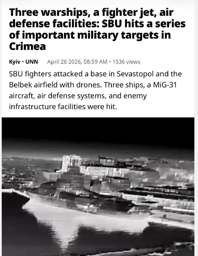 26日夜间最大的战果,则是乌克兰安全局再次空袭了俄军在克里米亚的诸多军事目标,其中,在塞瓦斯托波尔的黑海舰队登陆舰“亚马尔”号、“费尔琴科夫”号和侦察船“伊万·库尔斯”号再次被击中;黑海舰队下属的卢科姆卡训练中心、防空无线电技术侦察总部以及一套MR-10M1“米斯-M1”雷达系统。
