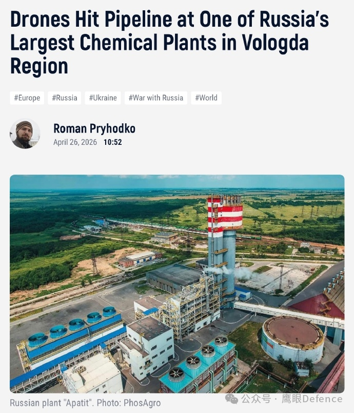 烽火问鼎计划 26日夜间,乌克兰又打击了一系列俄罗斯军事目标,诸如位于沃洛格达州切列波韦茨市的一家化工厂,该厂一条高压硫酸输送管道被击中造成泄漏,5名员工受伤,部分为化学灼烧:跟已经沦为“毒城”的图阿普谢比,不值一提。