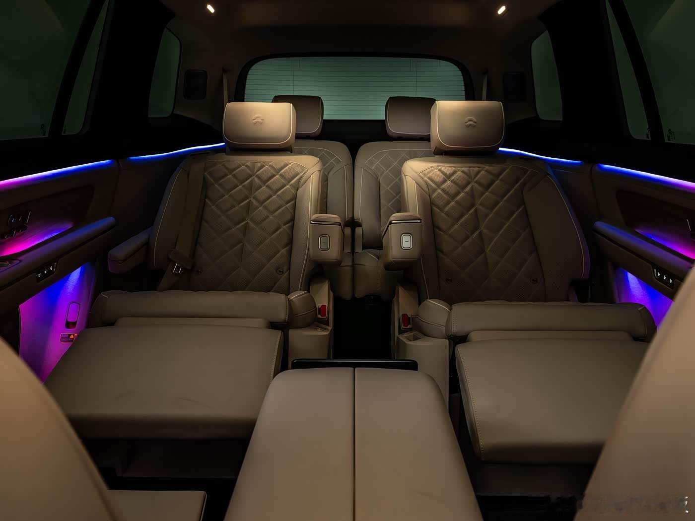 蔚来ES8虽然也是上面的三板斧,但氛围营造比同级的车更有质感,尤其是晚上亮起氛围灯后,很有顶级五星酒店那种高级感。建议还是要到店里感受,网上图片不太能感受出来……