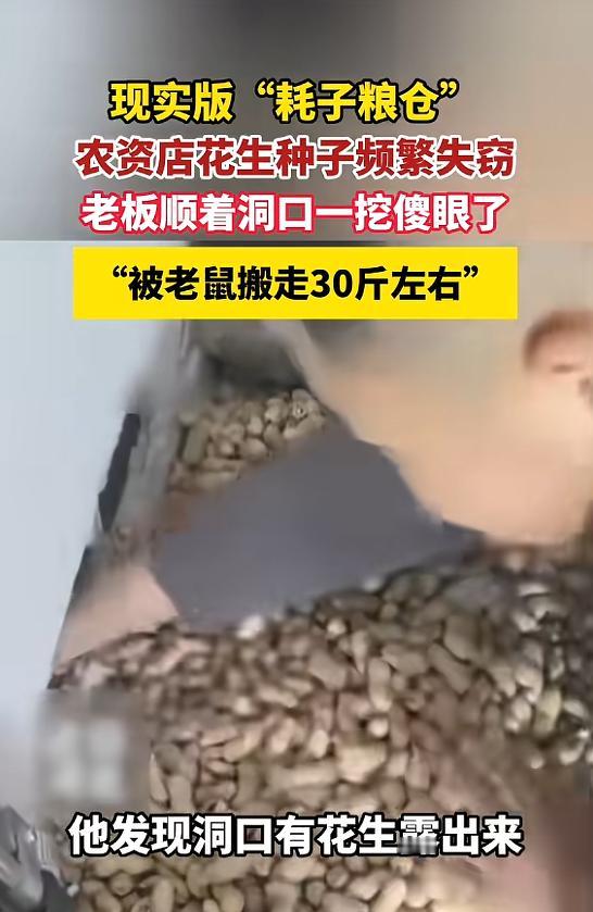 “这下傻眼了!”4月26日报道,河北唐山,一男子开了家农资店,他最近总觉得花生种子少了,但怎么都找不到原因,直到有天,他顺着一个洞口挖出了30斤左右的花生种子,才知道是老鼠一颗一颗叼进去的!网友:老鼠回家天塌了! 男子是个实在人,守着这家店好几年,凭着实在经营,跟周边农户都处得很熟络。 眼看春耕越来越近,农户们都开始忙着筹备播种的琐事,店里的农作物种子也渐渐热闹起来,其中花生种子最受青睐,大家都想着早早就备妥当,等天气回暖、地温达标,就赶紧下地播种,不耽误农时。 男子早早就摸清了农户们的需求,提前备足了各类种子,尤其是花生种子,按不同品种分好类,整整齐齐地码在货架一侧,方便农户挑选。 可没过上几天,一件反常的事让他犯了难——店里的花生种子,似乎在悄悄变少。 一开始,男子只当是自己忙中出错,毕竟每天来买种子、咨询农事的农户络绎不绝,有时忙着算账、找货,难免记混种子的数量。 可随着时间一天天过去,这种“错觉”越来越明显,为了找到问题根源,他趁着晚上关店后,把店里货架的缝隙彻底搜查了一遍,可连一点线索都没发现。 他又把所有装花生种子的袋子都逐一检查了一遍,指尖顺着袋子边缘摸过去,连细微的破损都没找到,所有袋子的封口都系得严实。 男子忍不住嘀咕:“难不成这花生种子长了翅膀,自己飞走了?” 找不到原因的日子里,男子整天心神不宁,附近的农户来买种子时,男子也会跟大家说起这件怪事,农户们听了都觉得新奇,你一言我一语地猜测起来。 就这样,这件事困扰了男子一个月,他甚至开始怀疑自己是不是记错了货物的数量,直到一天,一次偶然的发现,终于解开了这个谜团。 那天,店里没有顾客,男子闲着无聊,就想着把堆积的旧包装袋、空纸箱清理一下,这些东西堆久了不仅占地方,还容易滋生灰尘。 可就在他弯腰整理的时候,眼角余光不经意间扫过墙面,竟发现那里有个小小的洞口,洞口边上还露着几颗花生。 男子蹲下身,用手指轻轻抠了抠那个洞,没想到一抠,又有几颗花生掉了出来,这一刻,男子心里突然有了一个念头:难道自己丢失的东西,都藏在这个洞里? 之后男子不敢耽搁,立刻顺着洞口的边缘,小心翼翼地往下挖,挖了没一会儿,眼前的一幕让他瞬间僵在原地——洞里竟然满满当当的全是花生。 原来这些日子偷偷“拿”走花生种子的,是一只老鼠,这只老鼠想必是趁他白天忙着招呼顾客、打理店铺,或是深夜熟睡、毫无防备的时候,悄悄溜进店里,叼起一颗花生就往墙洞里跑,一趟又一趟。 整整一个月的时间,它就这样一点点把这些花生搬运到这个不起眼的墙洞里,一点点将这个洞,打造成了只属于自己的“专属粮仓”,把这里当成了存放“口粮”的安全之地。 花了许久的时间,男子才把这个墙洞里的花生挖空,拿到秤上一称,竟然有三十多斤。 看着这满满一袋,男子心里又气又笑,气的是这只老鼠折腾了自己一个月,让自己整天提心吊胆、坐立不安,笑的是这只老鼠太过拼命,辛辛苦苦忙了一个月,攒下这么多“口粮”,结果被自己直接挖空了。 男子觉得这件事太过稀奇,就随手拍了一段视频,发到了网上,网友们看完视频后,纷纷在评论区留言。 很多网友都调侃道:“这老鼠回来后看到自己屯的东西都没了,估计得老生气了。” (信息来源:杭州网《现实版“耗子粮仓”,农资店花生种子频繁失窃,老板顺着洞口一挖傻眼了,“被老鼠搬走30斤左右”》)