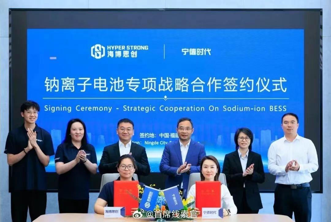 宁德时代携手海博思创签署全球最大储能钠电合作协议。