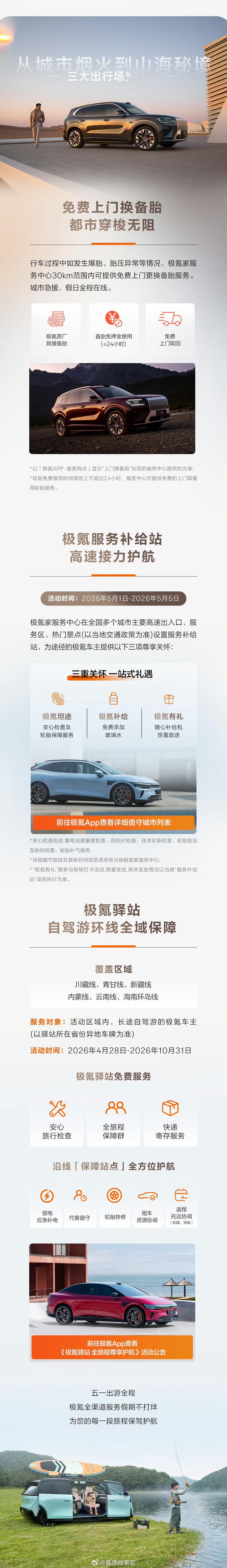 极氪推出 4.28-5.5 五一出行尊享服务: