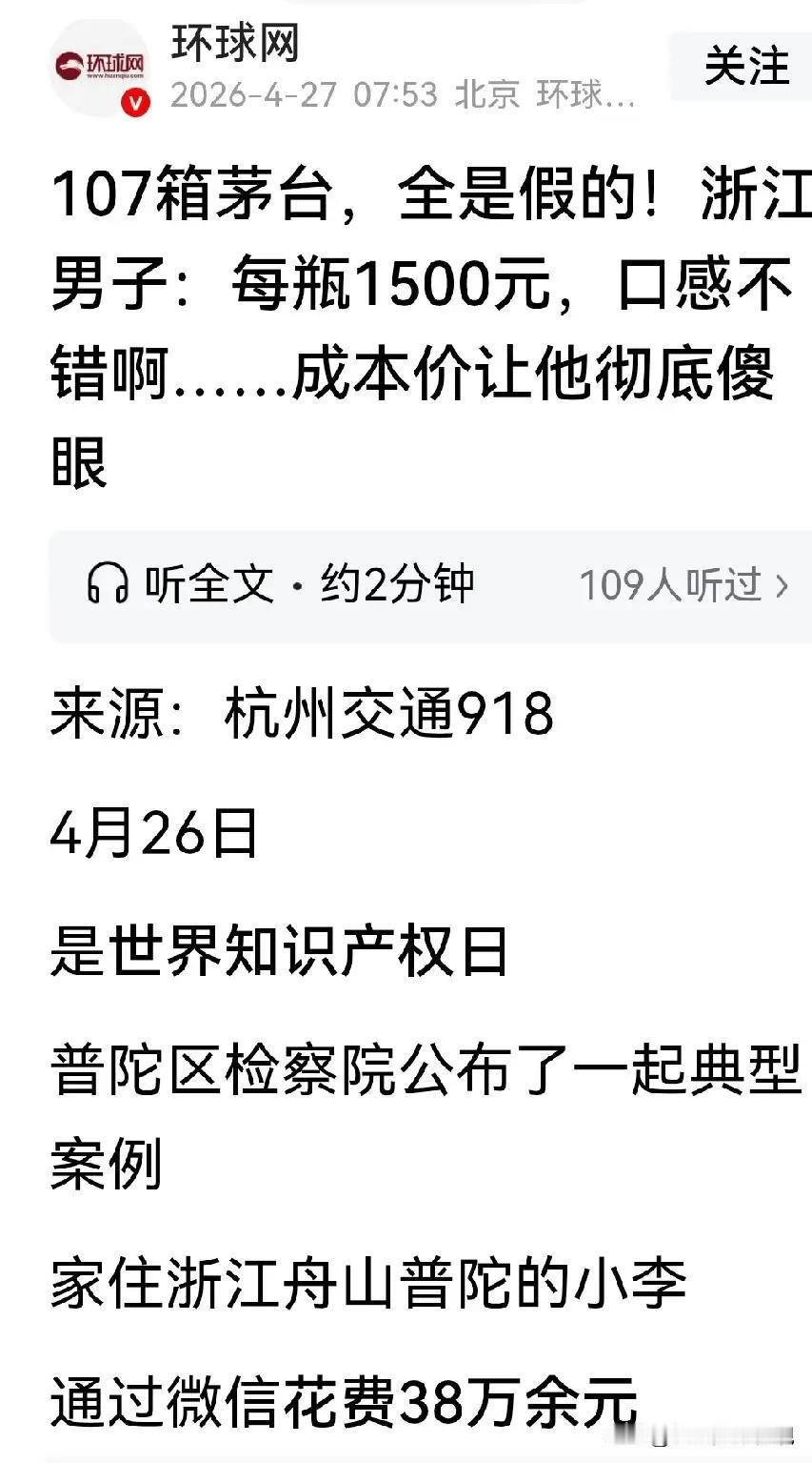 38万买教训:贪欲是健康的头号杀手 诸位朋友,今儿咱们单说一桩发生在浙江舟山的“茅台惊魂记”。这事儿,听着像“天方夜谭”,实则是一记敲在无数“聪明人”心坎上的警钟。小李,生意场上的老手,为了撑面子、搞宴请,在网上寻得“特殊渠道”,1500元一瓶拿下“飞天茅台”。初尝觉得“口感不错”,于是豪掷38万狂扫107箱。谁曾想,宴席之上,朋友一句“这酒不对劲”,让他瞬间从云端跌入谷底。经官方鉴定,全是假货!卖家进价仅百元,狂赚他35万。这哪是“捡漏”?分明是“被当猪杀”,赔了夫人又折兵,脸面扫地! 想当年,咱们总觉得“富贵险中求”,贪点小便宜那是“精明”。殊不知,这贪欲就像一颗“毒瘤”,一旦种下,必生祸端。小李喝的哪里是酒?喝的是“虚荣”,是“侥幸”。这假酒虽未毒死人,却毒害了人心。为了那点所谓的“性价比”,丢了诚信,坏了规矩,甚至在推杯换盏间,可能已经摄入了不知名的勾兑物。这哪是“享受”?分明是“慢性自杀”的糊涂账,赢了面子输了里子,这笔买卖,亏大了! 但这“惨痛”的背后,藏着的正是咱们今天要说的“大健康”真谛。真正的健康,讲究“身心双调”。外在,咱们得学会“守住底线”,别让那“贪欲”成了身心的“腐蚀剂”,病从口入,祸从口出,渠道正规才是硬道理;内在,这“感恩之心”更是不可或缺。我们要感恩这“朋友的提醒”,是他在关键时刻拉了咱们一把;更要感恩这“昂贵的教训”,它让我们明白,人生本就是一场借假修真的旅程,只有心存敬畏,不贪不占,身心才能安顿。这种“知足常乐”的通透,才是滋养生命的“灵丹妙药”。 我们要感恩这“生活的磨砺”,它虽带着苦涩,却让我们在每一次跌倒后,学会了脚踏实地。 愿世间少一些“投机取巧”的侥幸,多一些“坦坦荡荡”的从容。 愿你我皆安康,前程皆似锦!