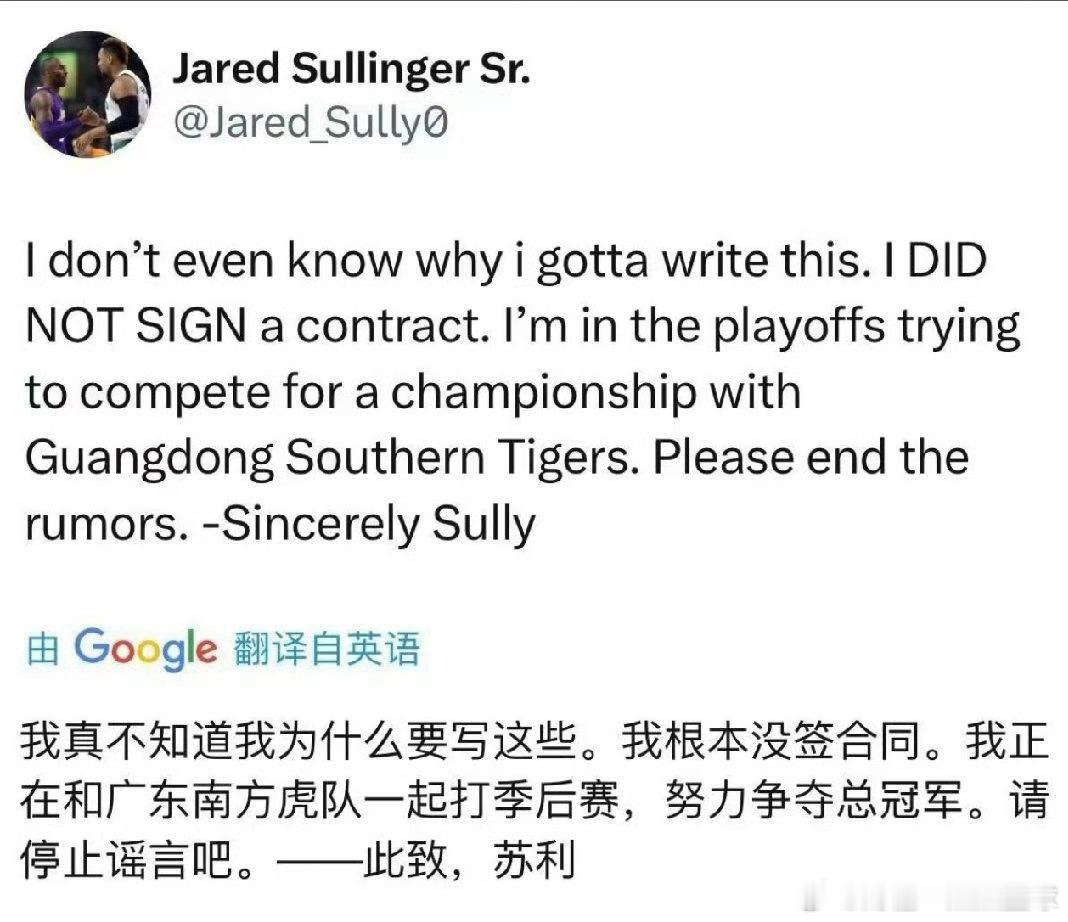 萨林杰亲自下场辟谣!海外签约传闻纯属谣言萨林杰本人已经在社交媒体上发声澄清了!网上那些说他已经敲定海外联赛合同、打完季后赛就走人的消息,全部都是假的!萨林杰本人明确表态:他从来没有签过任何海外球队,自己现在心无杂念,一门心思跟着广东宏远打季后赛,全队唯一目标就是冲击总冠军!希望大家别再被假消息带节奏,给球员一个安静的备战环境,专心看球!广东宏远CBA