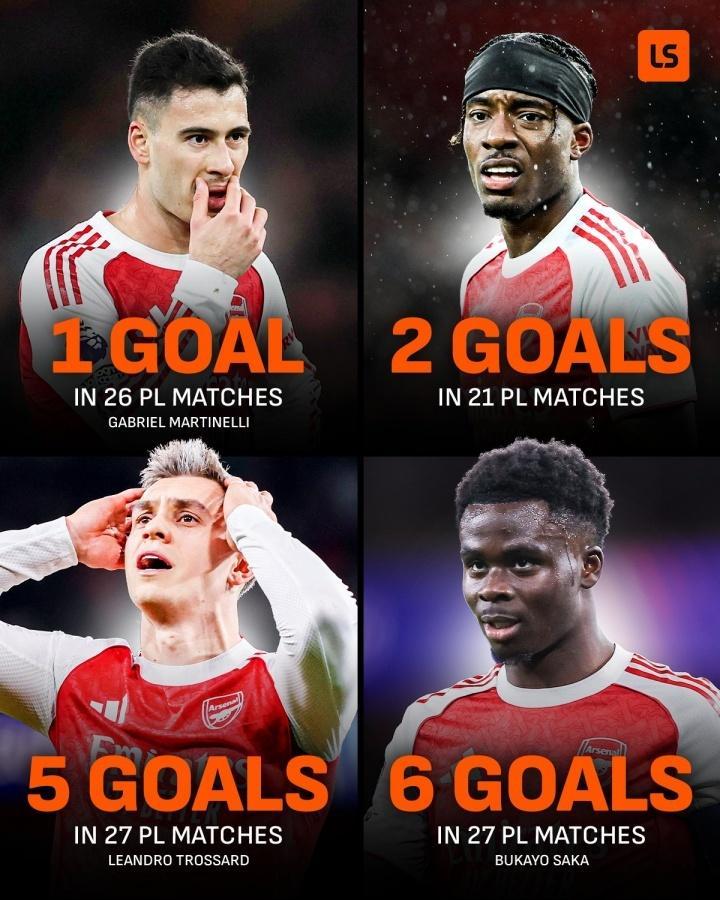 总身价2.35亿!阿森纳四大边锋英超共进14球:萨卡6球马丁内利1球