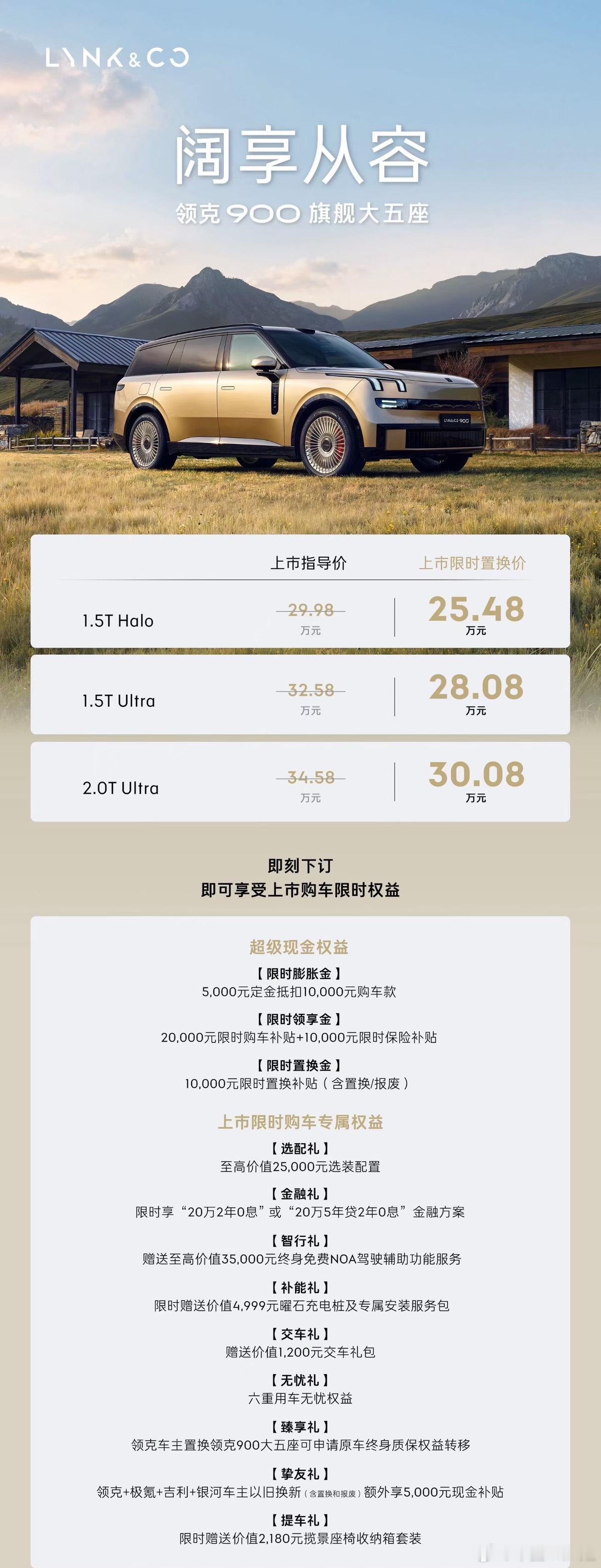 作为领克旗舰产品矩阵的重要一环,领克900大五座版与六座版形成互补,覆盖不同用户圈层。25.48-30.08万的上市限时定价,让高端旗舰大五座不再遥不可及。