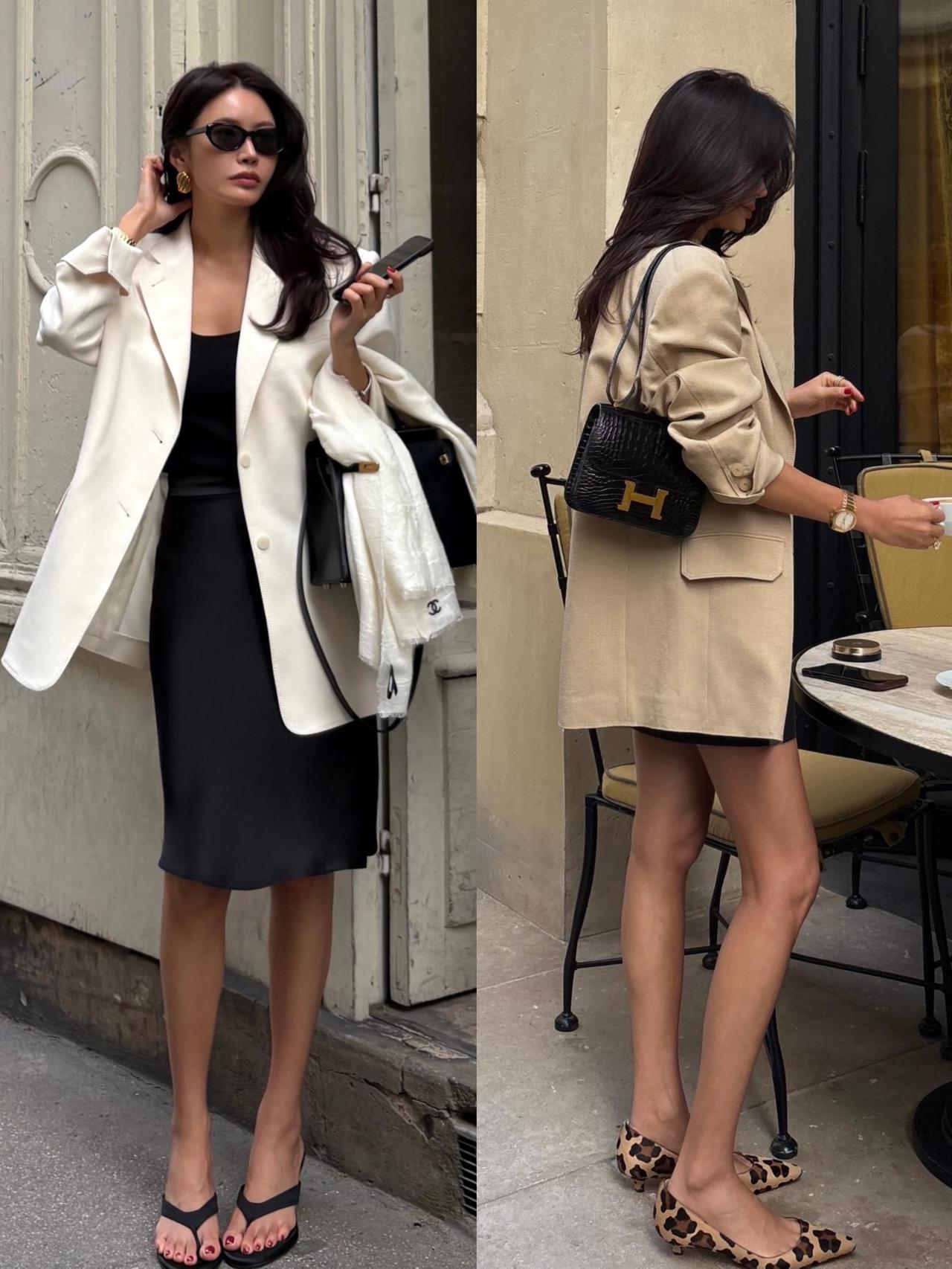 职场穿搭难拿捏得体与时髦? 韩国博主elborn_doris的街拍,自带利落不费力的职场高级感,打工人可直接照搬。 主打廓形外套+基础内搭+垂感下装万能公式,偏爱咖色、米白等低饱和色调,同色系搭配高级耐看。 巧用经典基础款循环混搭,单品百搭耐穿,一衣多穿轻松解锁多样通勤造型,简约显瘦,省钱又省心。