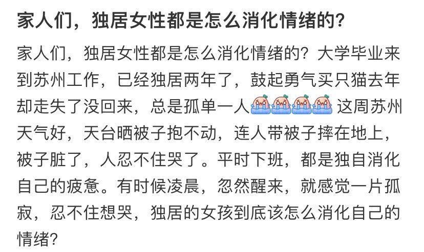 家人们,独居女性都是怎么消化情绪的❓