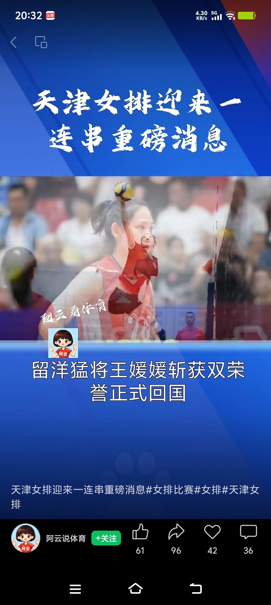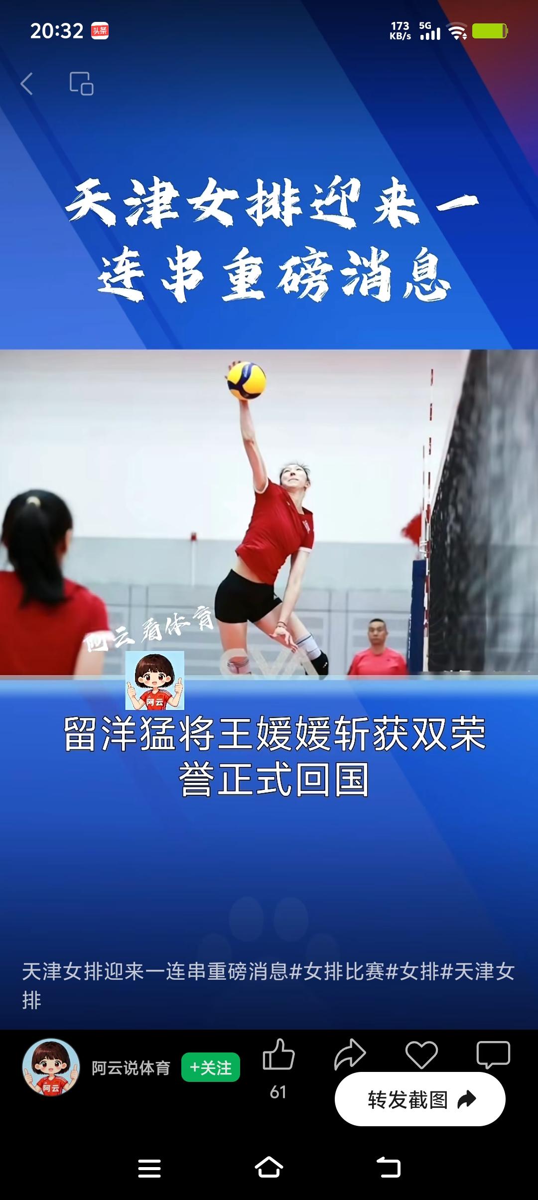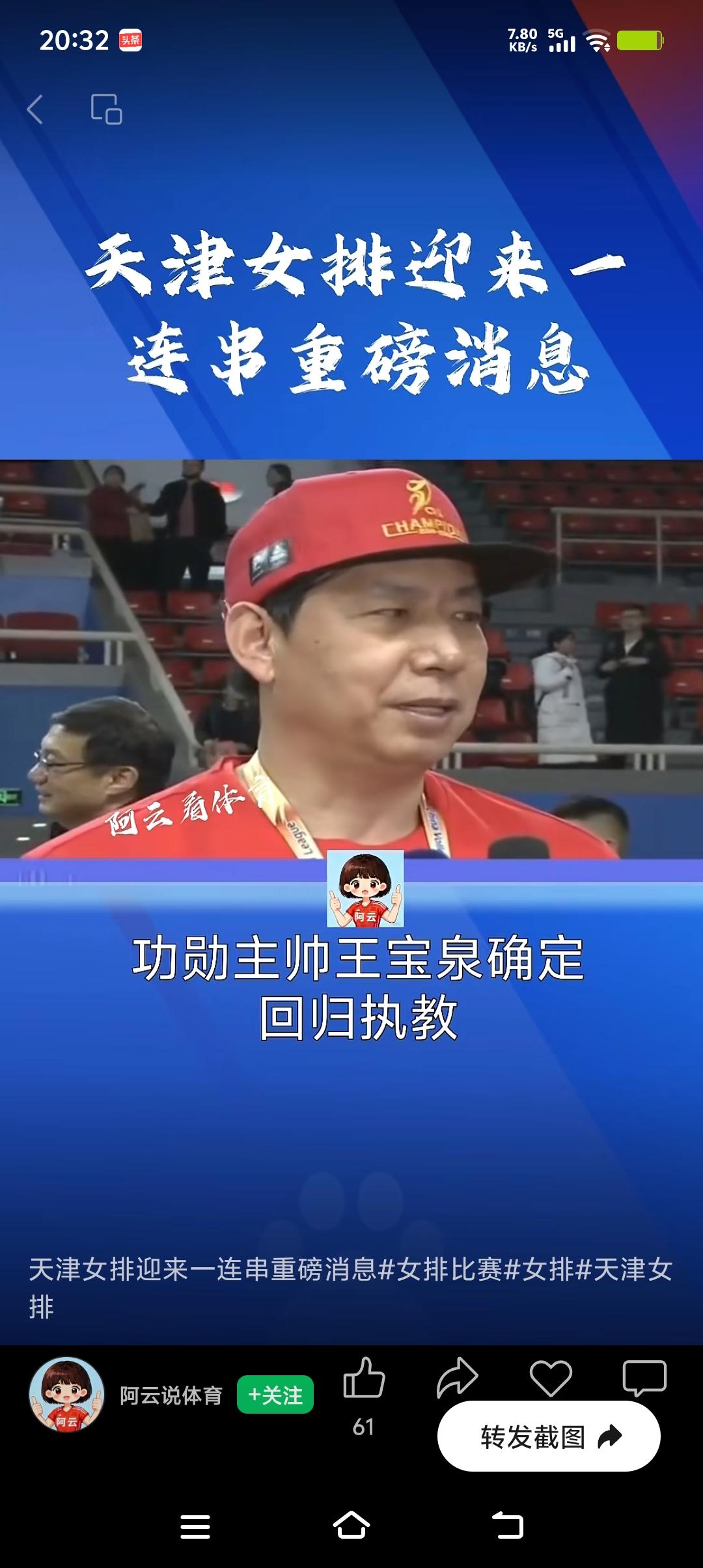 天津女排强势回归,新老交替已完成。近日一连串重磅好消息接踵来袭,猛将王媛媛国外归来,李盈莹伤病见好回归有望,功勋卓著的王宝泉教练再度回归,津门女排如虎添翼,巾帼英雄再展英姿。