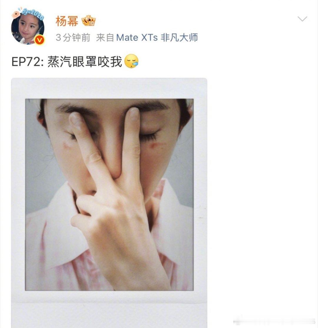 杨幂脸被蒸汽眼罩烫伤了💥杨幂发文调侃蒸汽眼罩咬人🥺眼下出现明显红痕惨遭低温烫伤眼周皮肤娇嫩日常用眼罩一定要把控时间大家可得多多注意⚠️