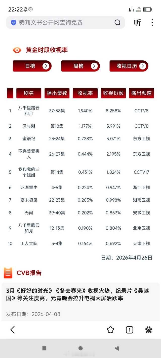 任嘉伦《风与潮》四轮重播CVB不仅连续破1还涨到了1.177。《风与潮》优秀说累