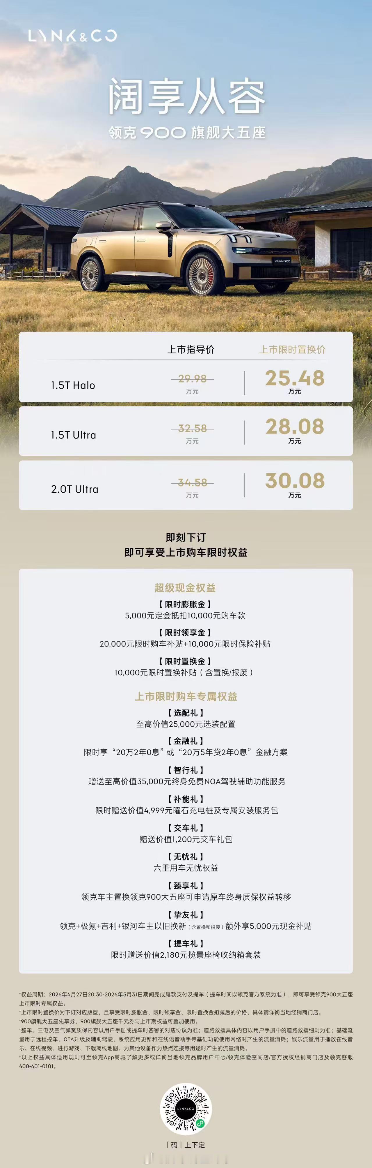 领克900大五座正式上市限时价25.48-30.08万元,一张图看懂哪款适合你