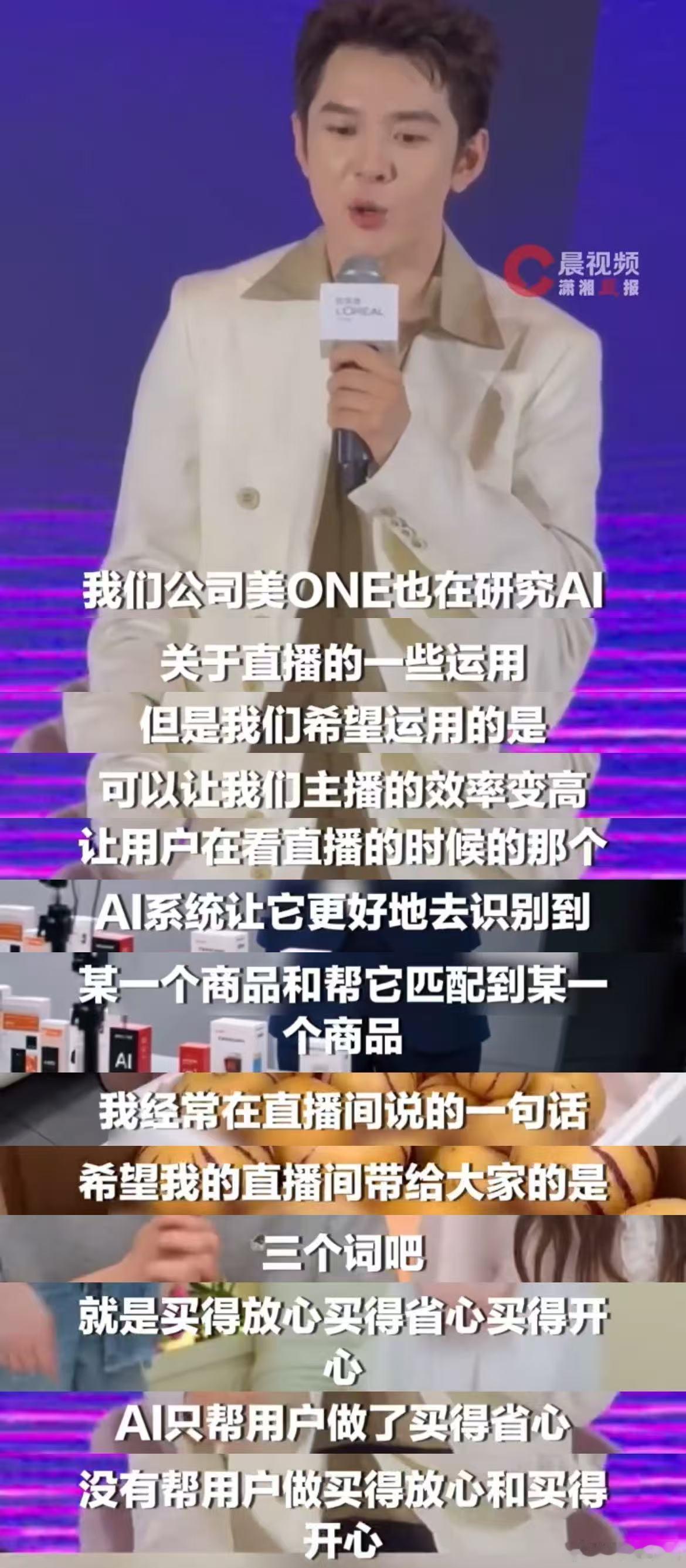直播的核心竞争力,从来不是算法,而是人和人之间建立的信任感。李佳琦称AI不一定能为用户负责李佳琦称与观众的信任感AI无法替代