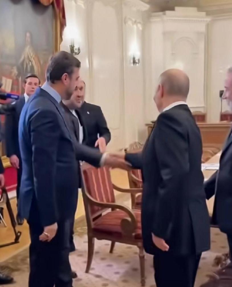 普京会见伊朗外长代表团,3个细节: 1、在圣彼得堡,不是莫斯科,普京特意赶过去,可见非常重视,患难更见真情! 2、会谈形式,面对面小型会议桌,亲近氛围好,普京是国家元首,按说与阿拉格齐外长级别并不对等,座次没有像接见下属一样,平等相待! 3、俄方多名高层参会,外长拉夫罗夫、总统助理等4人,还是凸显重视! 双方此次会晤,对伊朗而言非常重要!关注后续会谈内容!