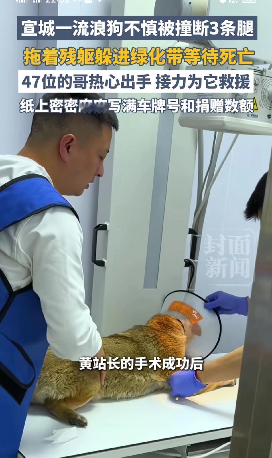 “暖心!”宣城一只流浪狗不幸被撞断三条腿,拖着残破身躯躲进绿化带,默默蜷缩等待死亡。47位热心的哥暖心接力、自发救援救助! 平凡人的善意,往往最戳人心。安徽宣城街头这一幕,没有轰轰烈烈,却用最朴素的行动,温柔护住了一条弱小的生命。 2026年4月,安徽宣城街头,一只常年徘徊在路边的流浪小狗,不幸遭遇车祸,惨遭车辆撞击,三条腿直接骨折断裂。剧痛缠身的它无法站立、无法行走,只能拖着残破的身体,蜷缩躲进路边绿化带深处,气息微弱,浑身无助,静静蜷缩在角落,默默等待死亡降临。 平日里,这只流浪狗早已和当地出租车司机熟悉。路过的的哥时常会停下脚步,随手带上一点食物、清水,默默投喂照料。日复一日的温柔相处,早已让这份双向的陪伴,悄悄扎根在街头烟火里。 这天,一位跑车路过的的哥,偶然发现了绿化带里奄奄一息的小狗。看着它浑身伤痛、动弹不得的模样,心里瞬间揪紧,实在不忍心就此放任不管。 他立刻拍下现场画面,把狗狗的悲惨处境发到宣城出租车司机群里,自发发起救援倡议。消息一经发出,瞬间刷屏,群里几十位的哥没有丝毫犹豫,纷纷响应,一人一份心意,主动自发捐款,凑齐狗狗的检查费、手术费。 为了铭记每一份善意,也为了账目清晰透明,大家专门拿出一张白纸,认认真真写下每一位参与救助的车牌号,还有对应的捐款金额。密密麻麻的字迹,整整齐齐的名单,每一串车牌、每一笔小额捐款,都是普通人最纯粹的心软与善良。 短短时间,47位宣城的哥自发集结,用一场温暖的爱心接力,撑起了弱小生命的希望。大家合力小心翼翼将受伤狗狗抱起,紧急送往宠物医院,交由兽医全面检查、救治。 得知狗狗伤势严重,需要立刻做手术接骨固定,不少的哥忙完营运工作,特意赶到医院门口默默等候。整整一下午,众人守在门外,满心牵挂,焦急等待手术结果。 漫长的治疗过后,好消息终于传来:骨折的三条腿顺利完成手术固定,狗狗成功脱离生命危险,伤势得到有效控制。听到结果的那一刻,一群奔波劳碌的的哥,纷纷露出欣慰的笑容。 目前,小狗在医院安心静养,慢慢恢复身体状态。后续这群暖心的的哥,还会持续关注康复进度,用心为它寻找靠谱领养人,让这只饱经磨难的小家伙,往后能告别流浪,拥有安稳温暖的小家。 一张写满车牌的白纸,一群奔波市井的普通人,不计回报、不分物种,拼尽全力挽救一条流浪生命。没有刻意炒作,没有流量加持,只是单纯见不得弱小受苦。 一城好人,满城温柔。宣城47位的哥的暖心举动,一经报道迅速刷屏全网,让所有人看到,一座城市的温度,从来都藏在这些不起眼的善意小事里。 这个事情各位读者怎么看呢?欢迎评论区讨论!