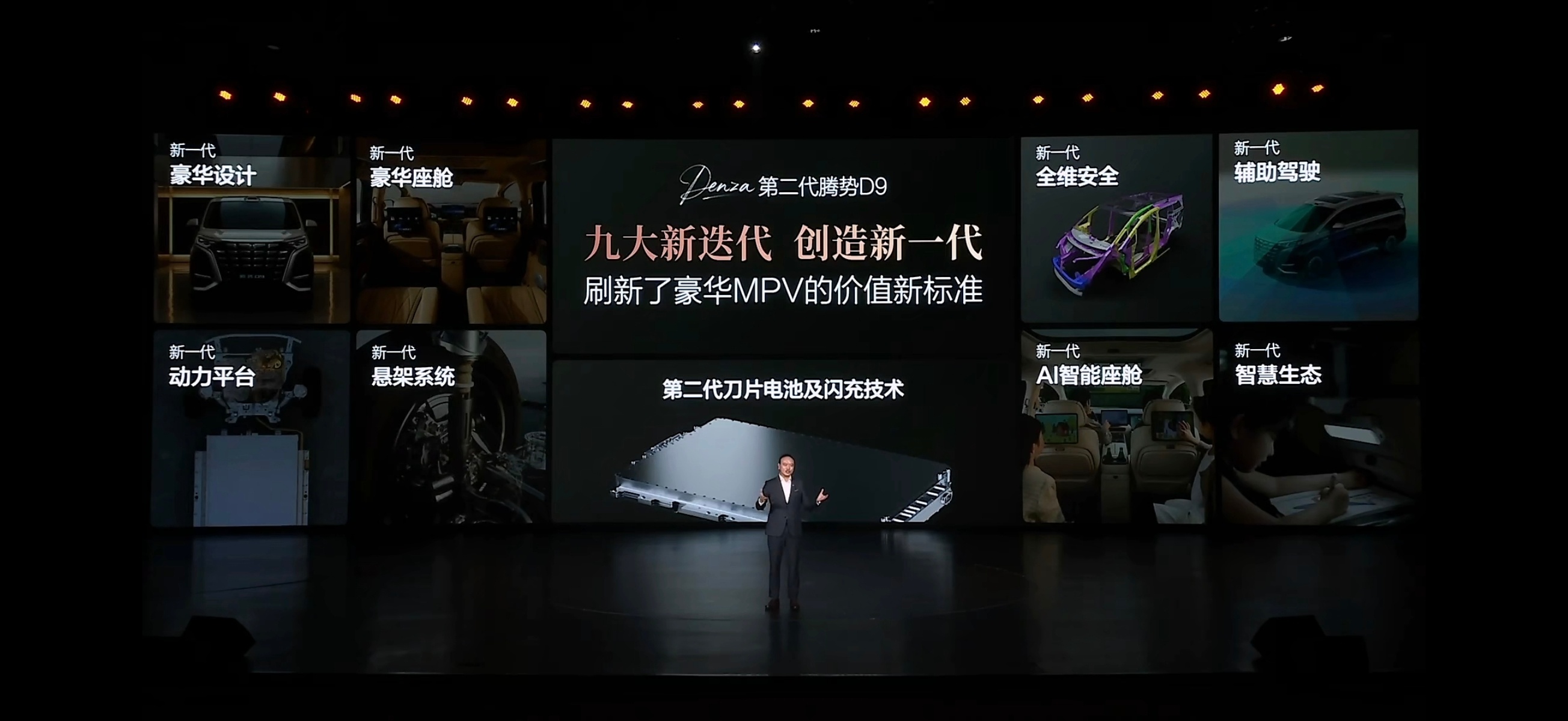 而比金句更更金的是第二代腾势D9对豪华的重新定义,升级不是一点点给力。首先是第二代刀片电池+闪充,3分钟充好,9分钟充饱,零下三十度只多3分钟,纯电版续航800公里,插混版纯电401公里,综合1521公里,充电不用久等,续航足够长,2个痛点全无才安心。