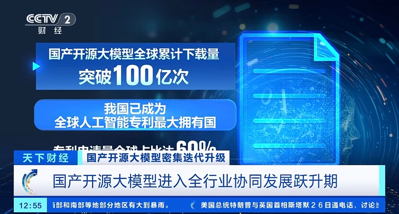国产开源大模型下载量破100亿次里程碑!国产开源大模型全球下载量破100亿次,全球近四成开源模型下载来自中国,份额超越欧美,打破长期垄断。