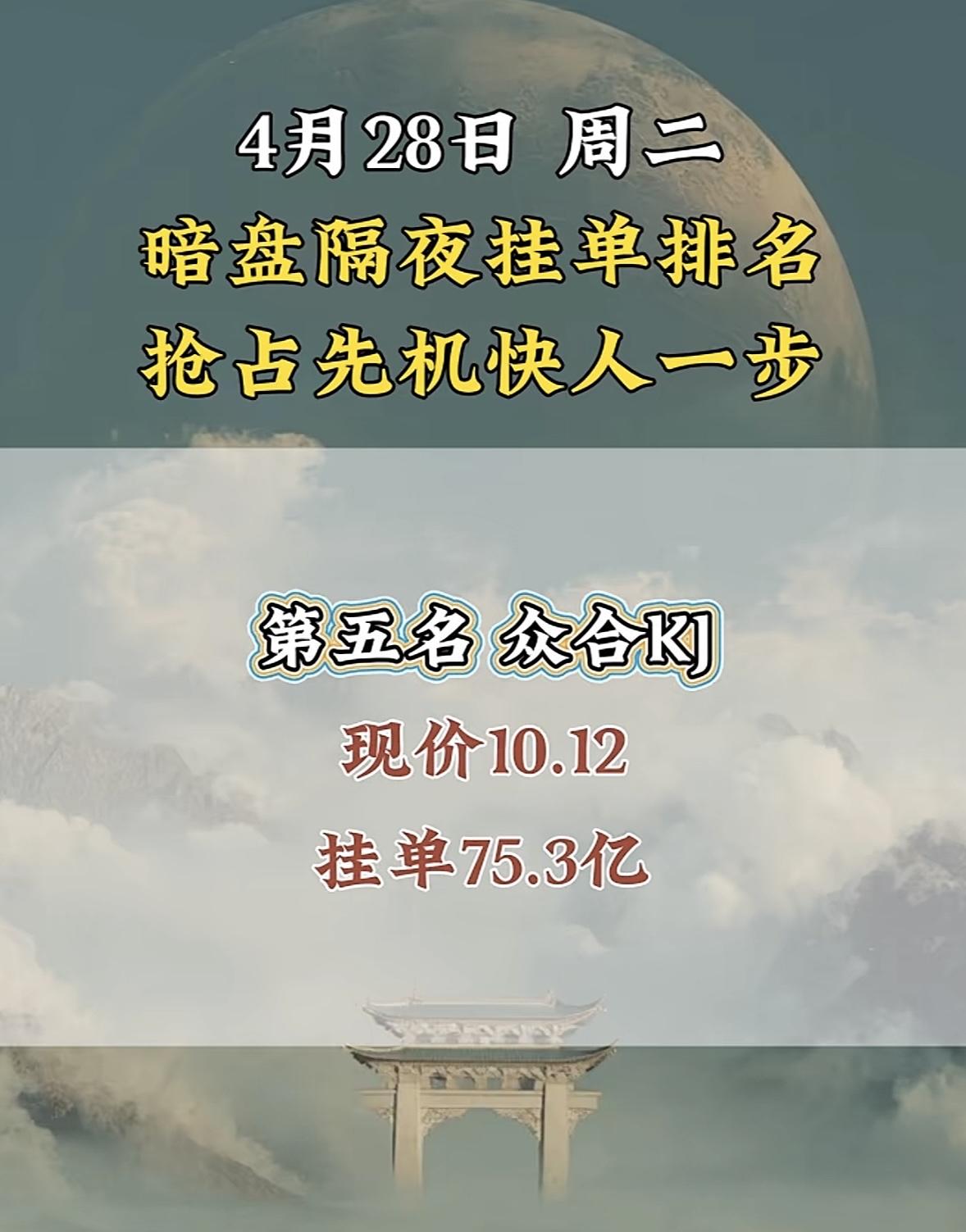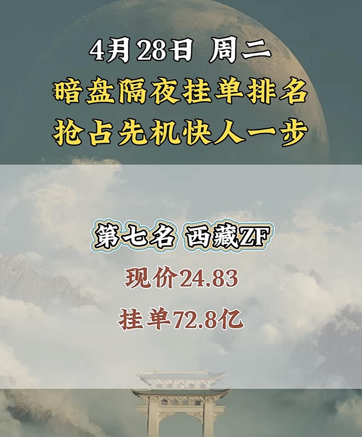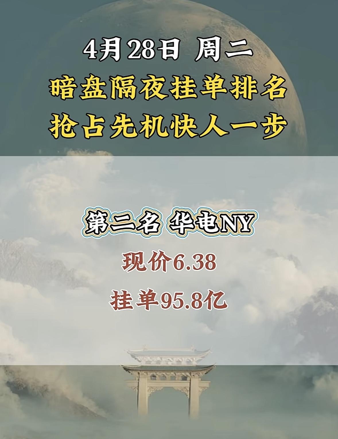 4月28日周二暗盘隔夜挂单排行榜揭晓 4月28日立讯精密在暗盘排名第八,现价71.97,这情况很值得说道。在股票市场里,暗盘表现就像是一场无声的较量,立讯精密能排到第八,那绝对是抢占了先机。 就好比大家都在同一起跑线竞争,它已经冲在前面。这个股价71.97,说不定后续还有上升空间。这让我想起那些在市场中敏锐捕捉机会的投资者,他们要是抓住了立讯精密这个机会,说不定就能在这场投资博弈中收获满满。不过,股市风云变幻,谁也不知道它之后会怎样,且看它后续表现吧。