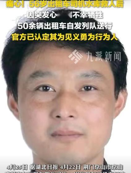 泪目!湖北京山,56岁的哥袁军波,晚上6点多接到一名女乘客。上车后他察觉对方情绪低落,问了一嘴,女子只说去水库“找熟人”。 到了目的地,女子径直走向沙滩试图轻生,袁军波见状二话不说冲下水把人救了上来。两人刚走到岸边,他突然捂住胸口倒地,再也没起来。 心脏病突发,抢救无效,牺牲。他救了别人的命,自己的命却没救回来。他只是开出租车的,不是消防员,不是警察。 可看到有人寻短见,他还是冲了下去。水里的命保住了,岸上的命丢了。 话说回来,这位袁师傅在京山盛源出租车公司可是个响当当的人物。开了一辈子车,年年都是“明星驾驶员”,属于那种丢了钱包准能给你送回来的实在人。 邻里街坊提起他,无不竖起大拇指,说他是个热心肠。可谁能想到,这份热心肠最后竟成了他的“催命符”。 4月22日傍晚6点,袁师傅开着那辆车牌号为鄂HTF979的出租车,在书香苑小区门口接到了乘客张某。一上车,袁师傅就觉得这姑娘不对劲,脸色白得吓人,眼神里透着一股子死志。 袁师傅试探着搭了几句话,姑娘只嘟囔着要去水库找人,随后便陷入了死一般的寂静。这种反常的举动,让跑了多年车的袁师傅心里咯噔一下。 车子到了惠亭水库大坝,姑娘下车后脚跟打飘,直勾勾往水边走。袁师傅根本不敢直接把车开走,他熄了火,就那么死死盯着那个单薄的身影。 果然,没过几分钟,姑娘就越走越深,冰冷的湖水眼看就要没过腰际。袁师傅心急如焚,推开车门就往水边狂奔,嗓子都喊哑了。 要知道,袁师傅此时已经56岁了,且身患心脏病,平时只能靠药物强撑。这种高强度的剧烈运动,对他来说无异于是在和死神换命。 可在那一刻,他脑子里哪还有什么医嘱?他一头扎进刺骨的湖水里,像个年轻人一样拼命划水。 姑娘在水里挣扎哭喊,死意已决,袁师傅却死死拽住她的胳膊。他喘着粗气说:“孩子,别怕,人生没有过不去的坎,跟我回去!” 凭着那一股子求生的蛮劲,他硬生生把人从死神手里夺了回来,一点点拖到了岸边。可就在两人脚踩上泥土的那一瞬间,袁师傅脱力了。 他猛地揪住胸口的衣服,脸色从青紫瞬间转为惨白,随后重重摔倒在地。路人赶紧打120,医生到场后全力抢救,可那颗滚烫的心脏最终还是停止了跳动。 最让人鼻酸的一个细节是,当袁师傅被抬上救护车时,他那辆出租车的计价器还亮着。那跳动的数字,仿佛还在静静等待着主人收车回家,可他再也回不去了。 事后大家才知道,被救的张某是因为家庭矛盾一时冲动。她在袁师傅的灵位前哭得撕心裂肺,可再多的忏悔也唤不回这条鲜活的生命。 4月24日,京山市正式认定袁师傅为见义勇为。虽然荣誉迟到了,但公道自在人心。 4月25日出殡那天,场面震撼了整座城市。50多辆出租车自发集结,打着双闪,连成一条长龙。 沉闷的鸣笛声响彻云霄,那是同行们在为这位平凡的英雄送行。他用最后一单生意,向世人展示了底层的善良到底有多厚重。 在这个物欲横流的时代,很多人笑话老实人吃亏。可袁师傅用生命告诉我们,有些东西比命更贵。 他没有豪言壮语,甚至在跳水前都没想过自己会不会出事。这种本能的善良,才是最让社会破防的硬核力量。 英雄不一定非要身披铠甲,也可以是那个每天在大街小巷穿梭的平凡司机。致敬袁军波师傅,愿天堂没有病痛,愿这份善良能温暖更多寒冷的灵魂。