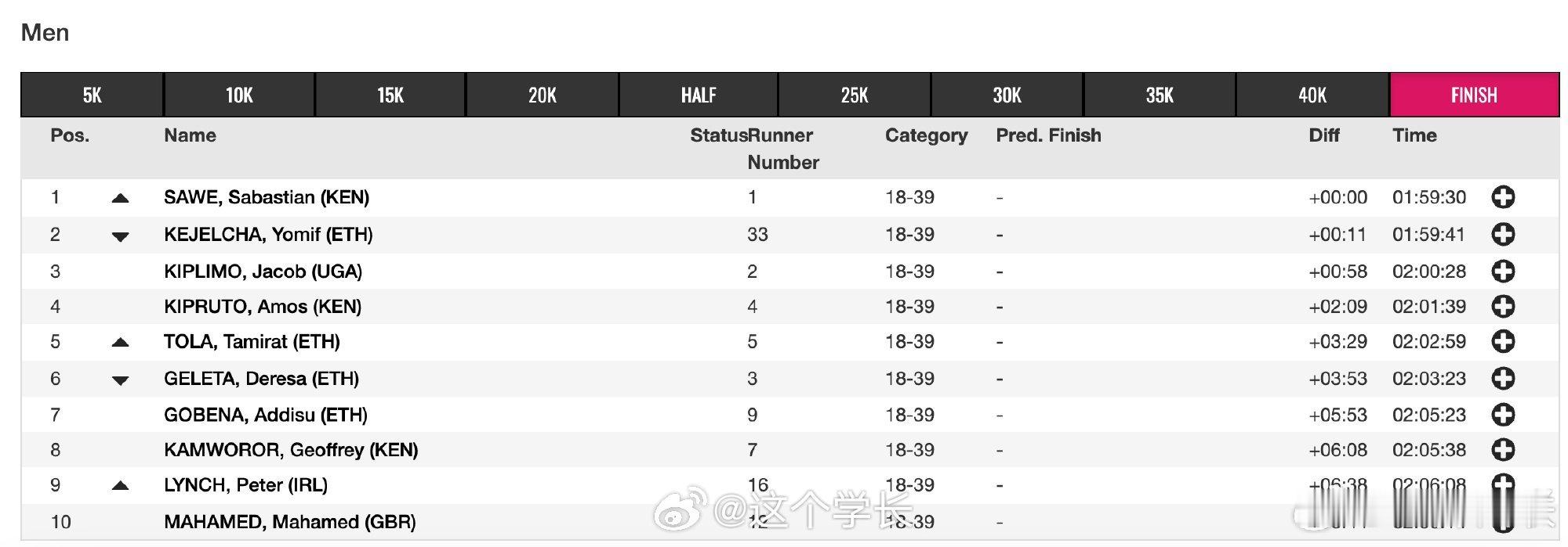 顶尖运动员选拔:由具备卓越有氧能力、经济跑姿和强大意志力的精英选手执行,如肯尼亚运动员萨维,他在2026年伦敦马拉松以1:59:30完成历史性突破。科学训练体系:长期系统性训练积累高跑量,结合高强度间歇、长距离拉练与专项力量训练,全面提升耐力与速度耐受能力。比赛策略设计:采用精确配速控制,由专业配速员(兔子)引导形成保护性队形,减少风阻;补给点提前规划并精准递送。装备技术支持:穿着经验证可提升跑步经济性的碳板竞速跑鞋,利用先进材料减轻重量、增强回弹。环境条件优化:选择气温凉爽(约10–15℃)、湿度适中、赛道平坦且少风的天气与路线,最大限度降低体能损耗。