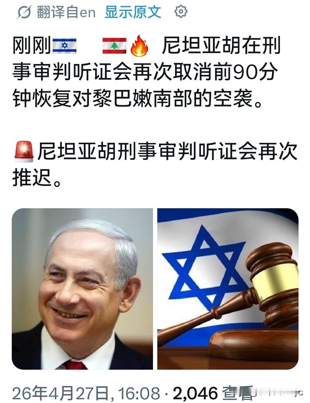 今天,内塔尼亚胡在对他刑事审判听证会再次取消前90分钟恢复对黎巴嫩南部的空袭。 这一时间上的“巧合”,精准地揭示了内塔尼亚胡当前“以战止审”的政治生存逻辑。这并非偶然,而是一场精心计算的“边缘政策”博弈,旨在利用国家安全为筹码,向司法系统施压,以推迟其腐败案的审理。 这一系列操作清晰地展示了其策略:通过制造或维持“可控的混乱”,为延期审判创造“合法”理由。自2020年案件启动以来,这已是其律师团队第18次以“国家安全”为由申请庭审延期。 事实非常清楚,以色列所有的军事行动并没有明确的军事目的,更不是什么国家安全威胁,都是内塔尼亚胡为拖延法院对自己的审判而采取的“急救”策略。 我们看到的“空袭”与“庭审取消”之间的关联,正是内塔尼亚胡政治生存剧本中的关键一幕。他正试图将整个国家的安全政策与个人法律命运深度捆绑,让枪炮声成为其法庭上的辩护词。