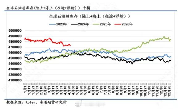 全球原油库存数据(来源:Kpler、海通期货研究所)原油期货
