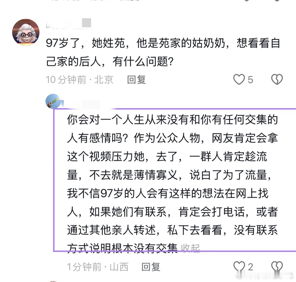 苑琼丹近期莫名陷入尴尬争议,属实被强行道德绑架了。4月27日,辽宁网友晒出视频,替一位97岁老人隔空喊话苑琼丹。老人自称是苑琼丹的姑奶,直言苑琼丹父亲是自己侄儿,盼着她能抽空回乡探亲、认祖走动。看着是高龄老人的淳朴心愿,实则处处透着刻意。高龄老人出面发声,背后大概率是旁人授意安排,借着长辈身份制造舆论,逼迫艺人妥协。老话常说穷不走亲,富不还乡。苑琼丹深耕演艺圈多年,身家不菲,早已是千万级别身家。一旦顺水推舟回乡,人情礼数、物资慰问样样少不了;若是低调前往或是空手而归,转眼就会被恶意抹黑、大肆吐槽。进退两难左右不是,赴约就要被人情捆绑、沦为议论把柄,无视又会被扣上冷漠不孝的帽子。说白了,就是借着亲情和高龄长辈的由头,赤裸裸的道德绑架,利用舆论施压,未免太过功利。