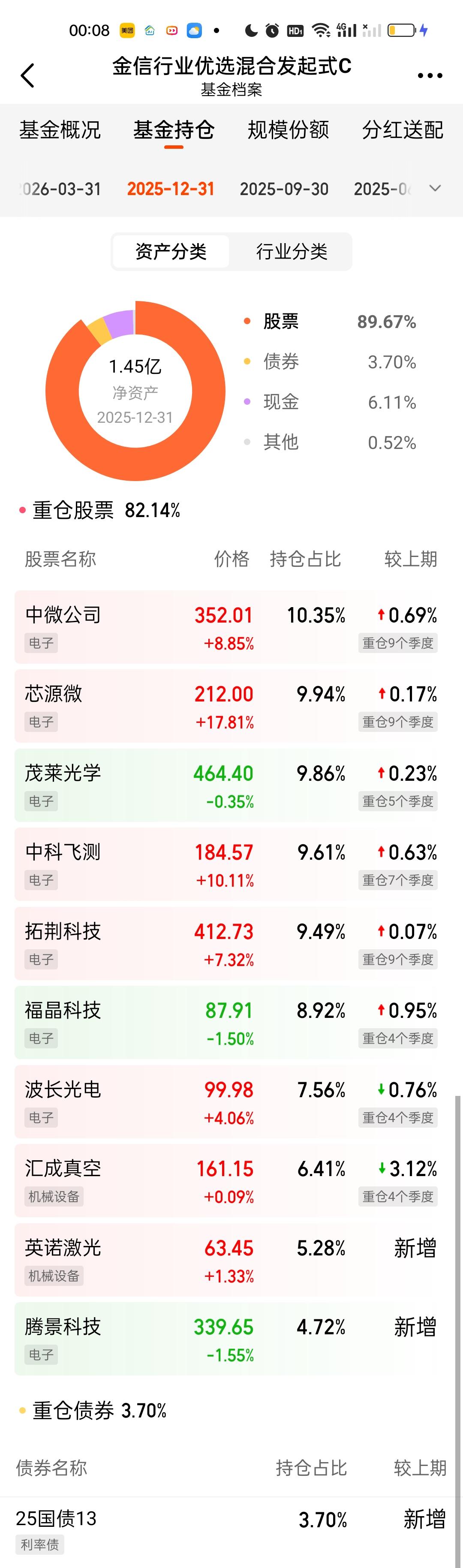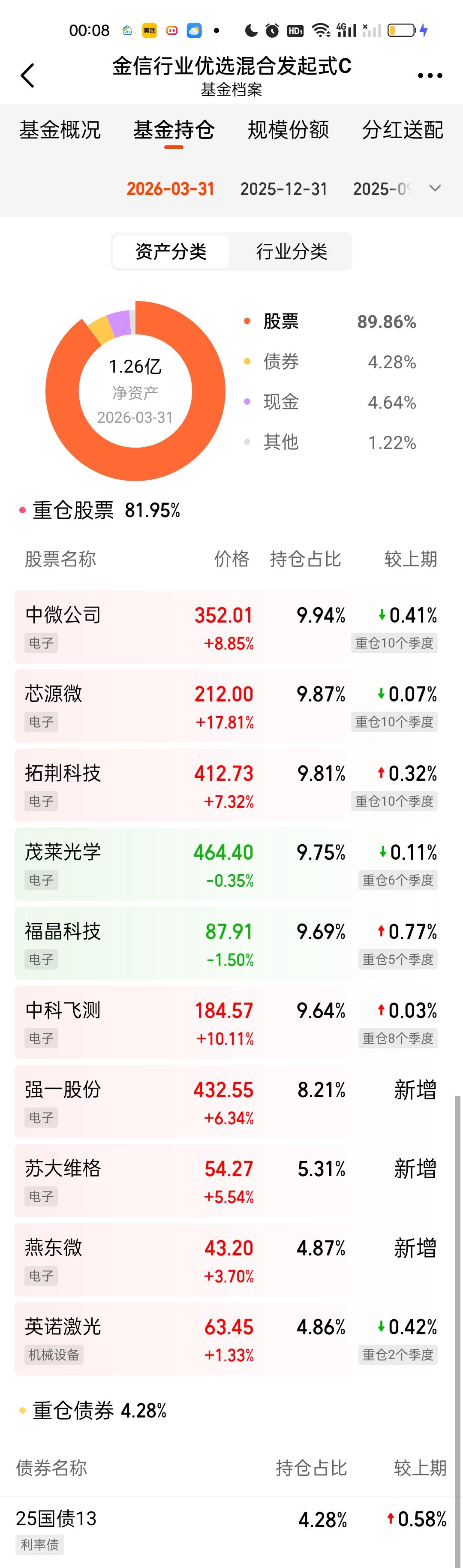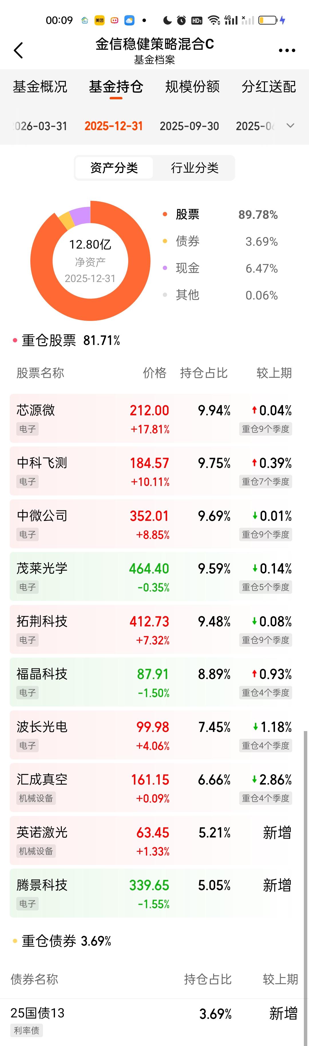 金信三兄弟这次调仓都是新增了3只个股,强一股份,苏大维格,燕东微舍弃了波长光电,汇成真空,腾景科技。三只基金的前十大重仓股占比依旧都保持在80%以上。三只基金的规模和上个季度比相差都不大。