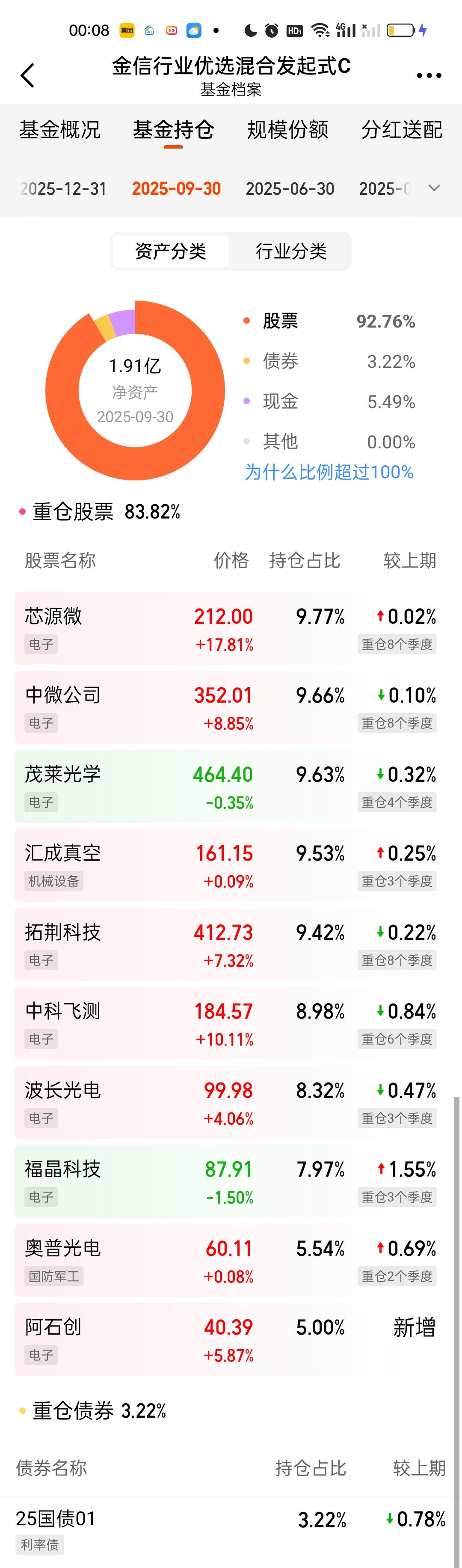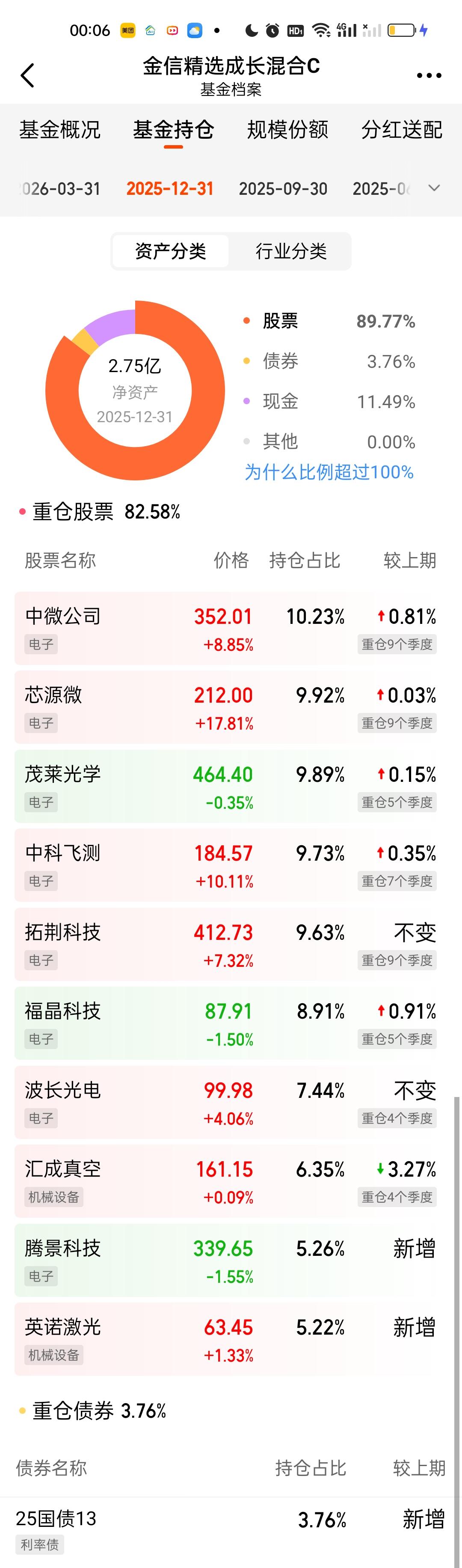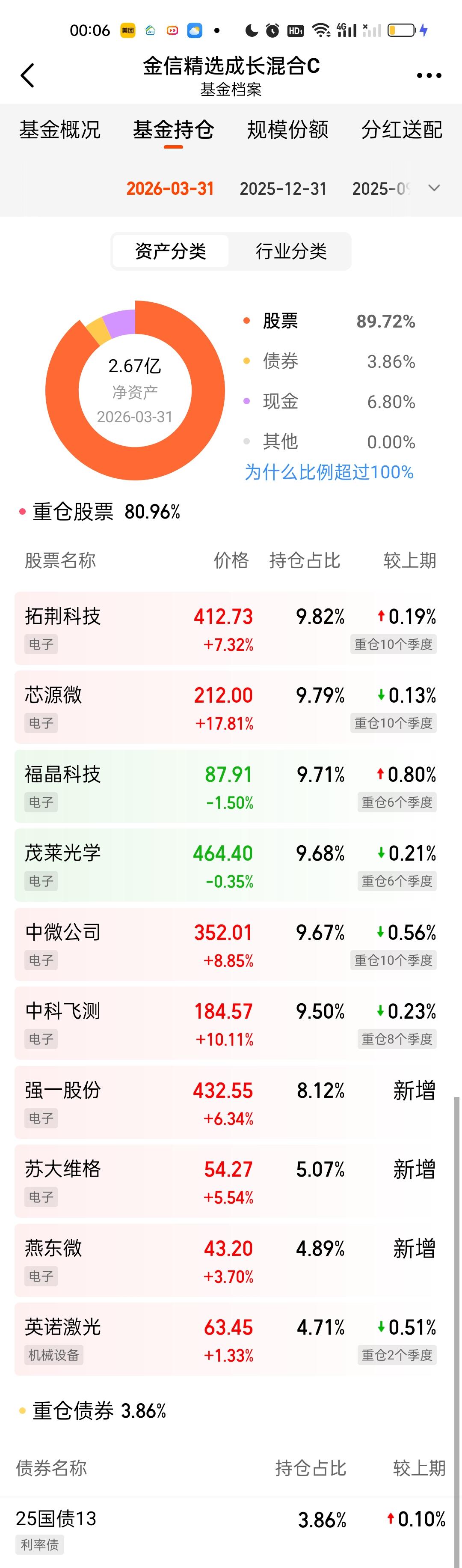 金信三兄弟这次调仓都是新增了3只个股,强一股份,苏大维格,燕东微舍弃了波长光电,汇成真空,腾景科技。三只基金的前十大重仓股占比依旧都保持在80%以上。三只基金的规模和上个季度比相差都不大。