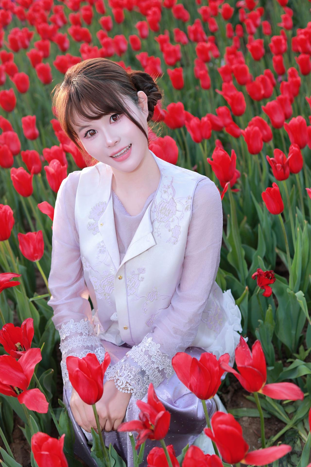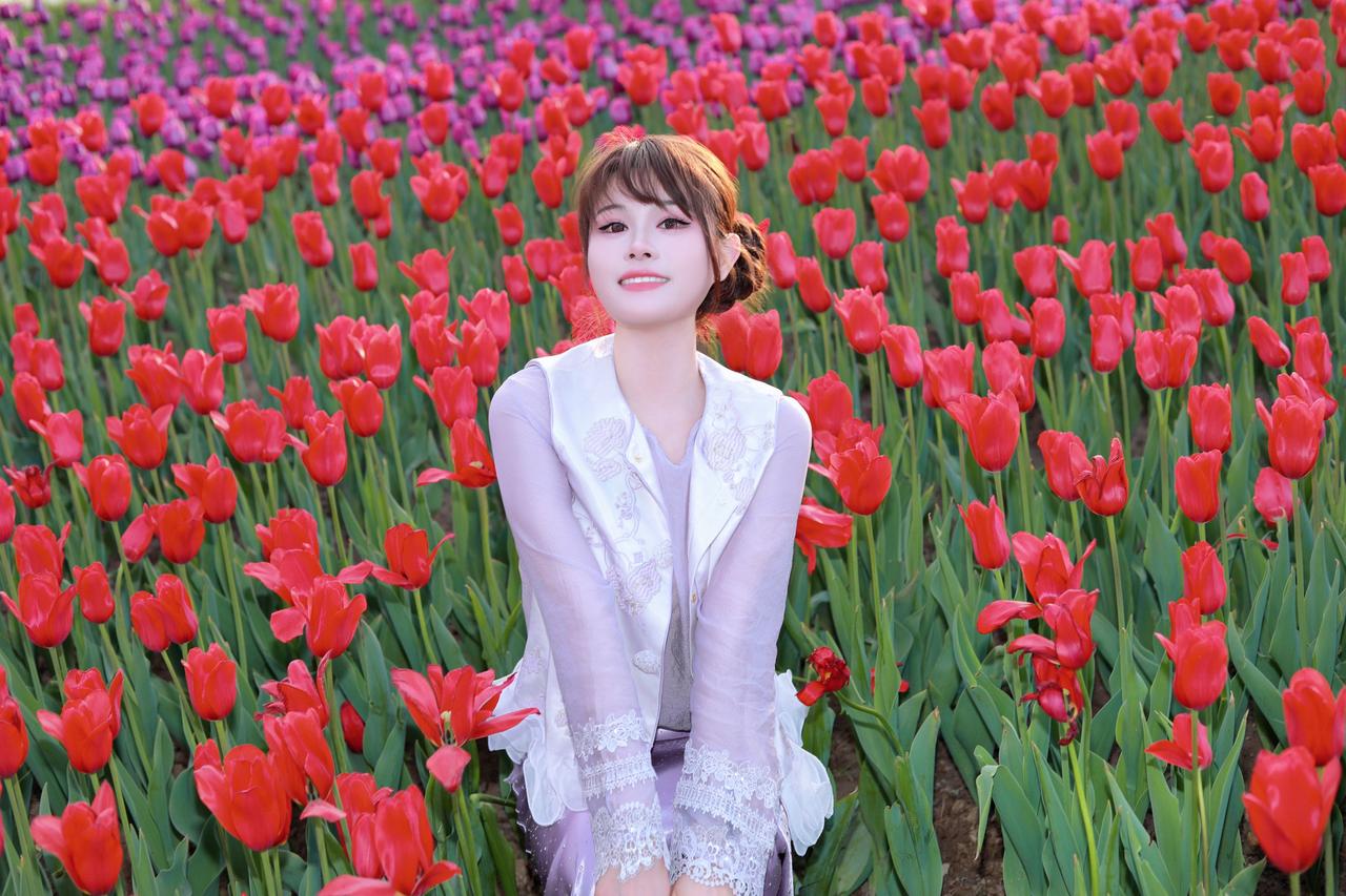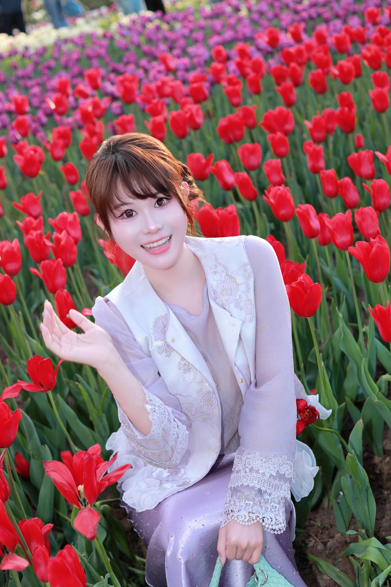 太原人像摄影约拍跟拍郁金香花海花海里的白月光穿搭初夏穿搭晋阳湖郁金香人像原