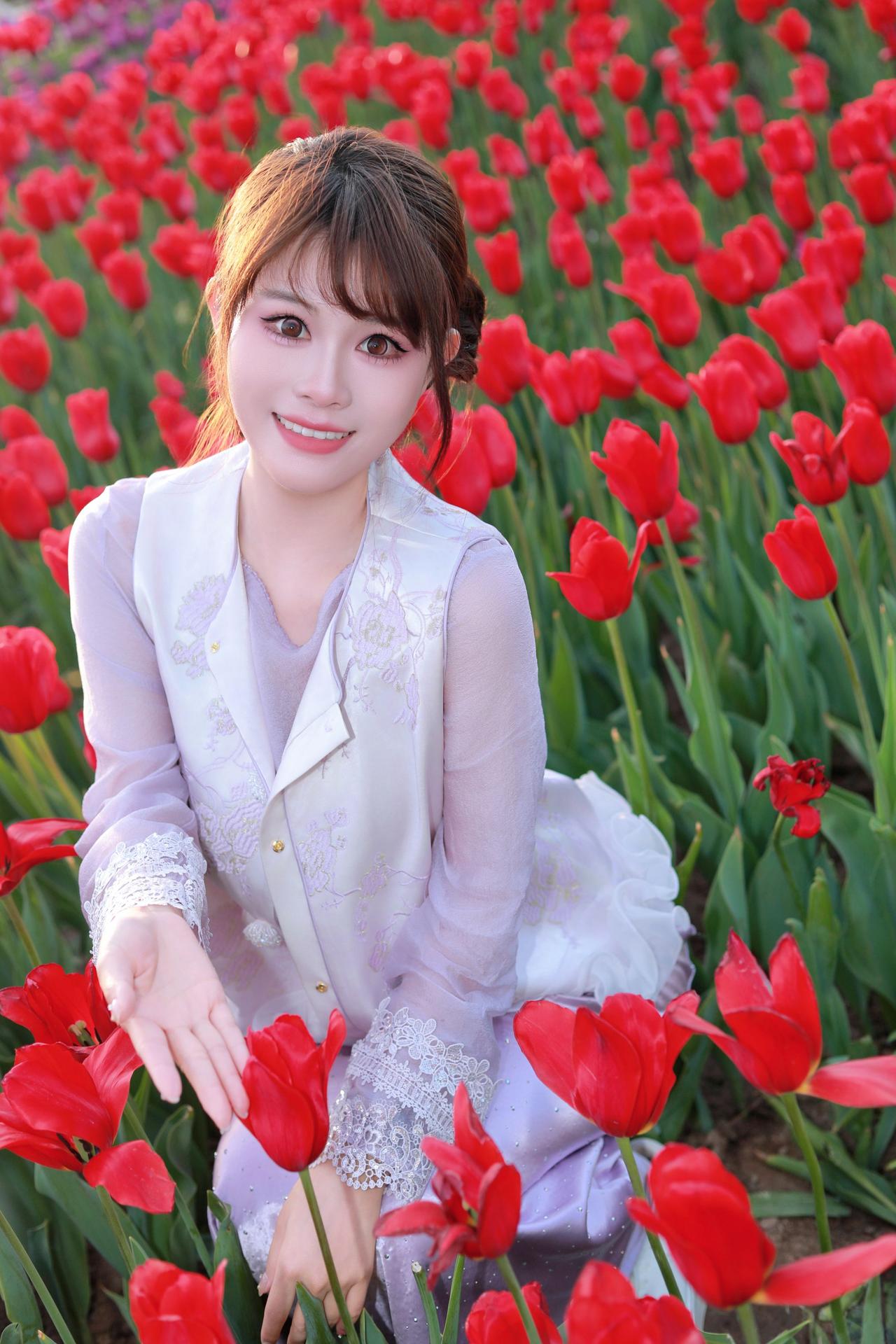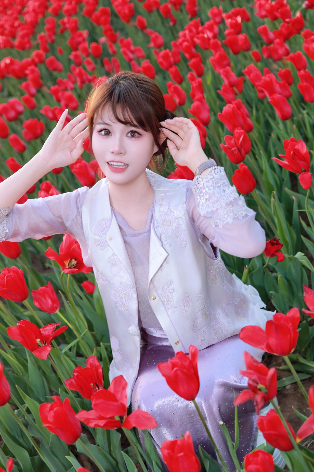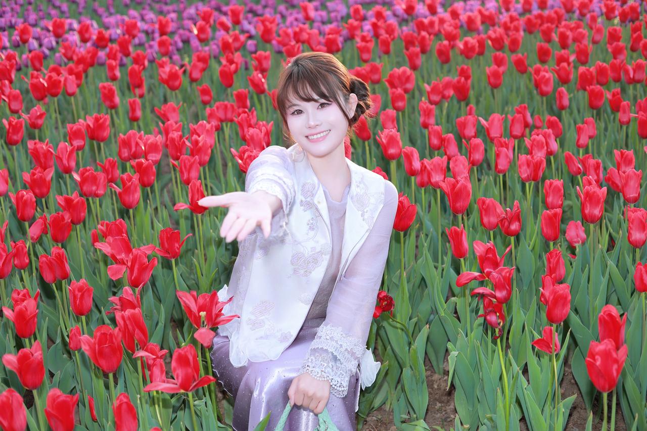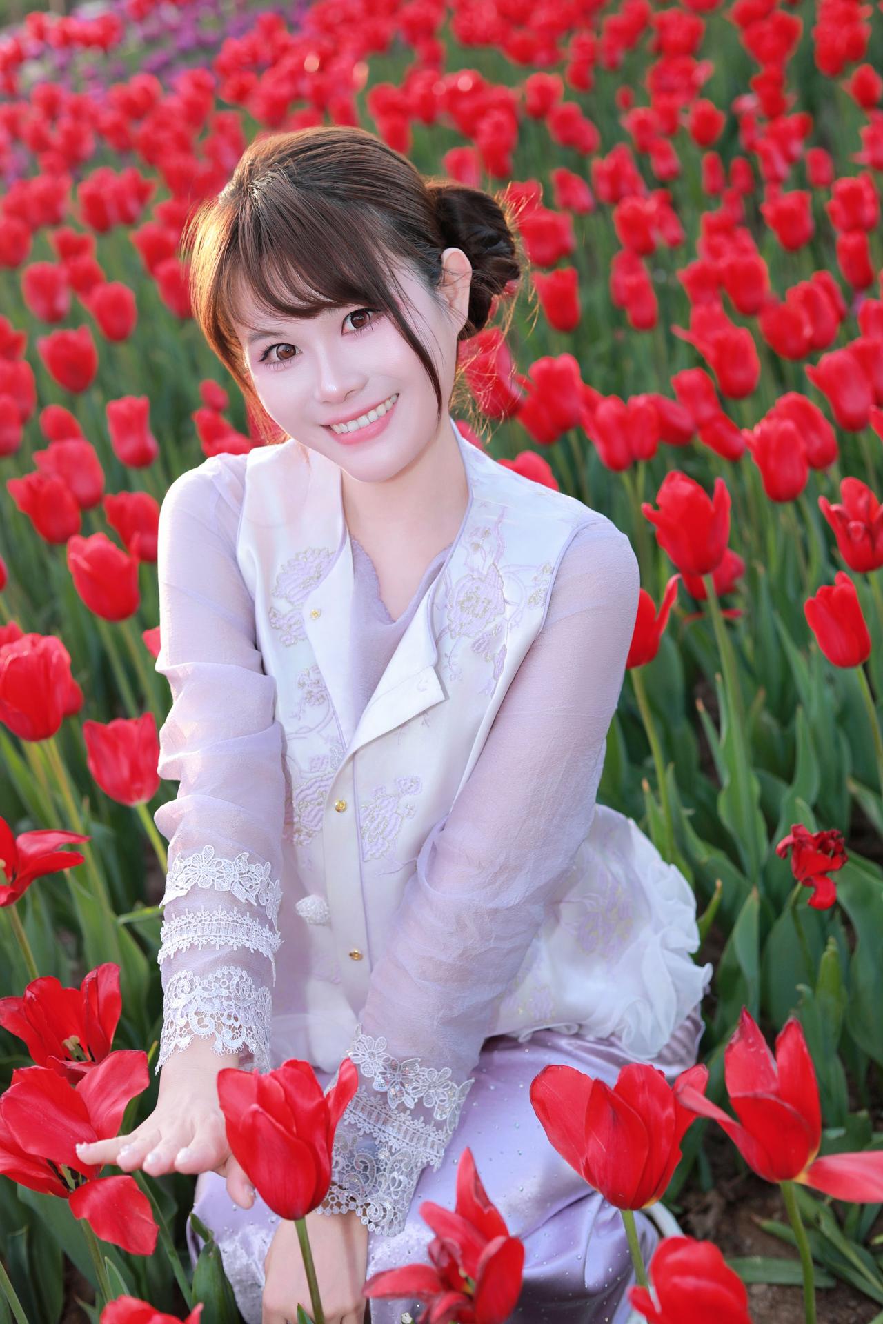 太原人像摄影约拍跟拍郁金香花海花海里的白月光穿搭初夏穿搭晋阳湖郁金香人像原