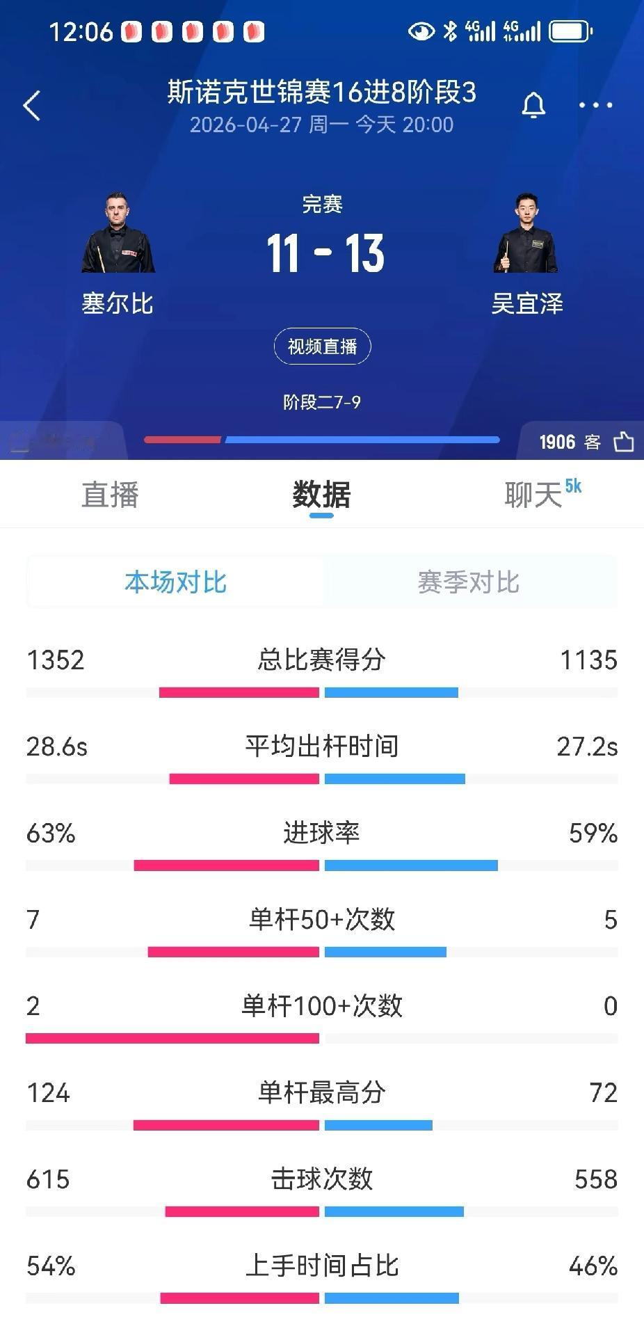 虽然赢得有些丑陋,但吴宜泽毕竟赢了,13比11战胜了四届世锦赛冠军塞尔比,昂首挺进2026年斯诺克世锦赛8强,这也是吴宜泽首次在大赛中战胜塞大师。祝贺! 体育比赛本来就是成败论英雄,窝窝囊囊地赢胜过漂漂亮亮的输。其实,赢了就不窝囊,输了就谈不上漂亮。 希望吴宜泽再接再厉,上演青春风暴,再赢30局进入决胜,再赢48局为00后夺个冠军,当然我希望他的决赛对手是赵心童!