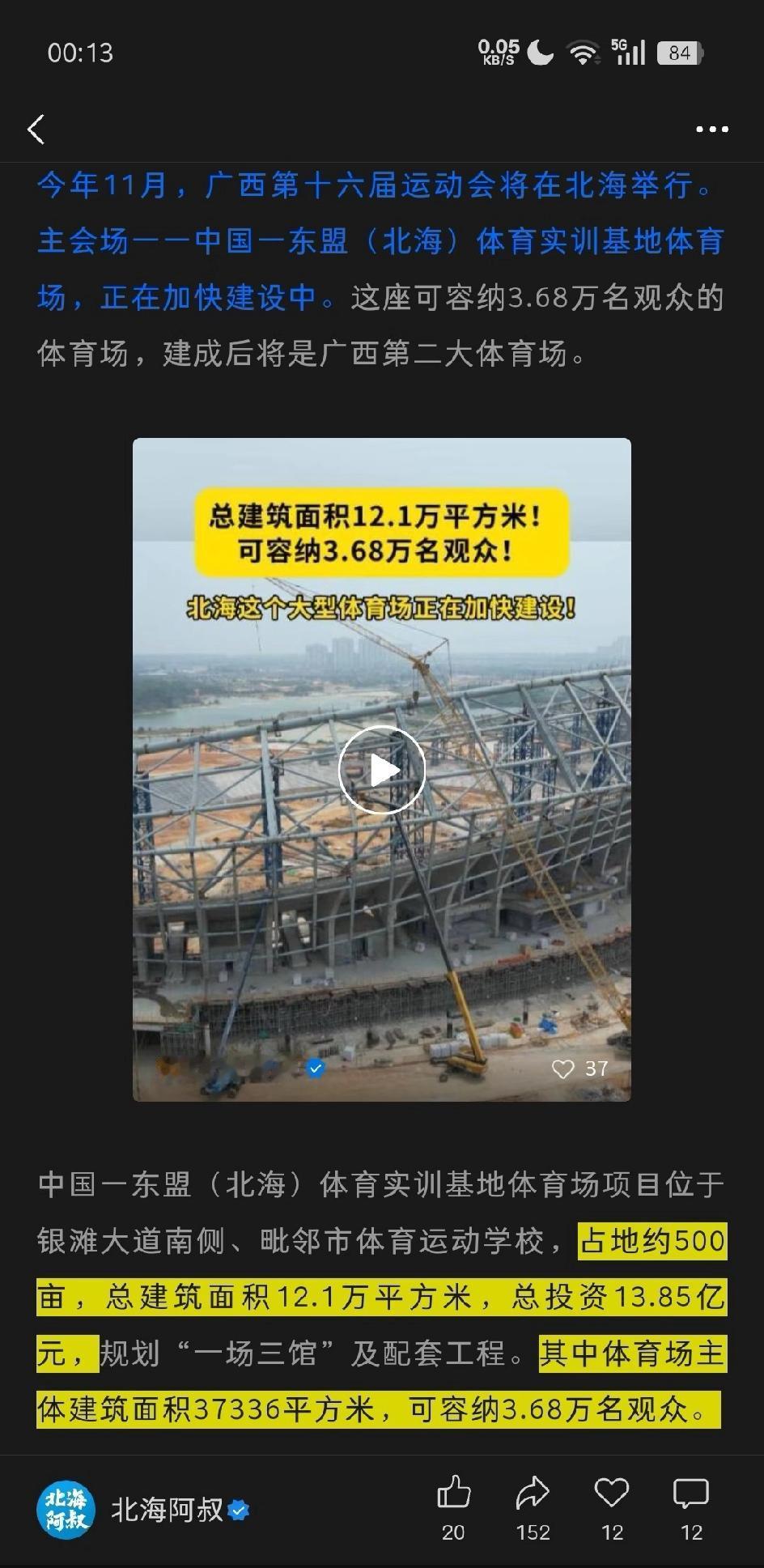 北海体育中心即将建成,期待 建好了可以回家看演唱会咯!期待檀健次回家乡开演唱会!绝对抢票去看,看完演唱会还能去侨港喝糖水,美滋滋。