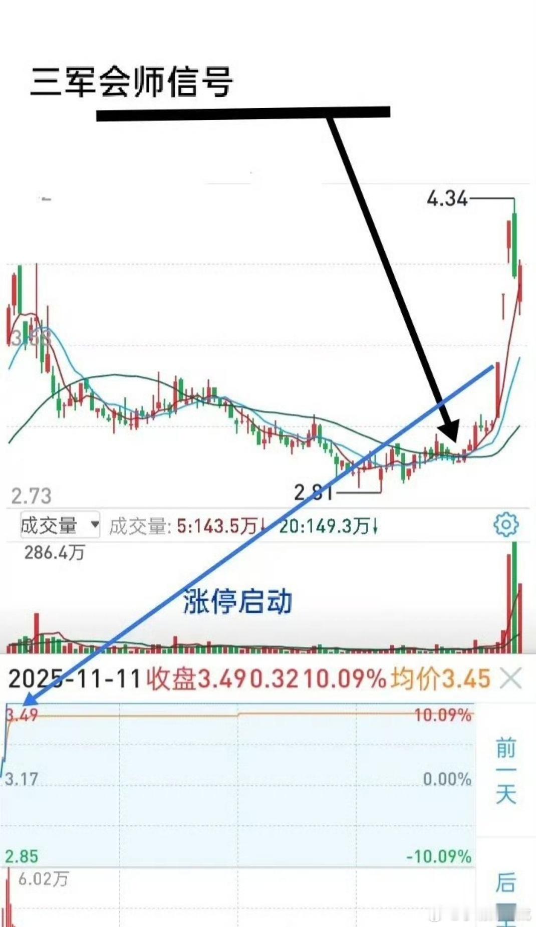 做短线交易时间长了,能感知到行情的变化,向好发展快人一步入场,指数下行则早一步下车,但要认清事物的本质。主力收割的本性是一致的。华尔街制造冲突、新闻,全世界的股市主力借机大肆收割。散户总以为股市会崩盘,主力在出逃,恰恰相反,他们把血淋淋的筹码塞满自己的帐户,而股市只不过是经历了一场暴风雨。主力在笑,散户哀声一片,此时行情又回暖了。从股市诞生那天起,无数人倒在这里,再也没有起来。这是教训,更是认知。利润产生在股价的价差产生的空间,所以做短线要清楚,象量化那种在狭窄的空间玩花招,吃不了多少肉,尽管放心,和咱们散户毫无关联。真正的主力一定会让股价翻1倍到几倍,这也是我们短线去参与,去分享一杯羹所在。所以,看下图,大涨信号出现时,主升浪启动快速跟进,高手们拿到20%的利润见分歧迅速离场,然后给自己放个假。