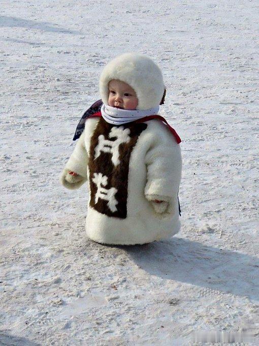 西伯利亚穿着传统冬装的萨哈(“雅库特”)儿童