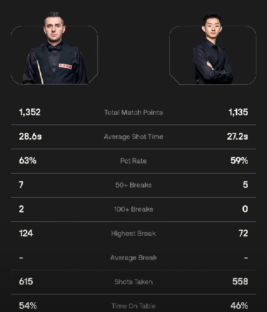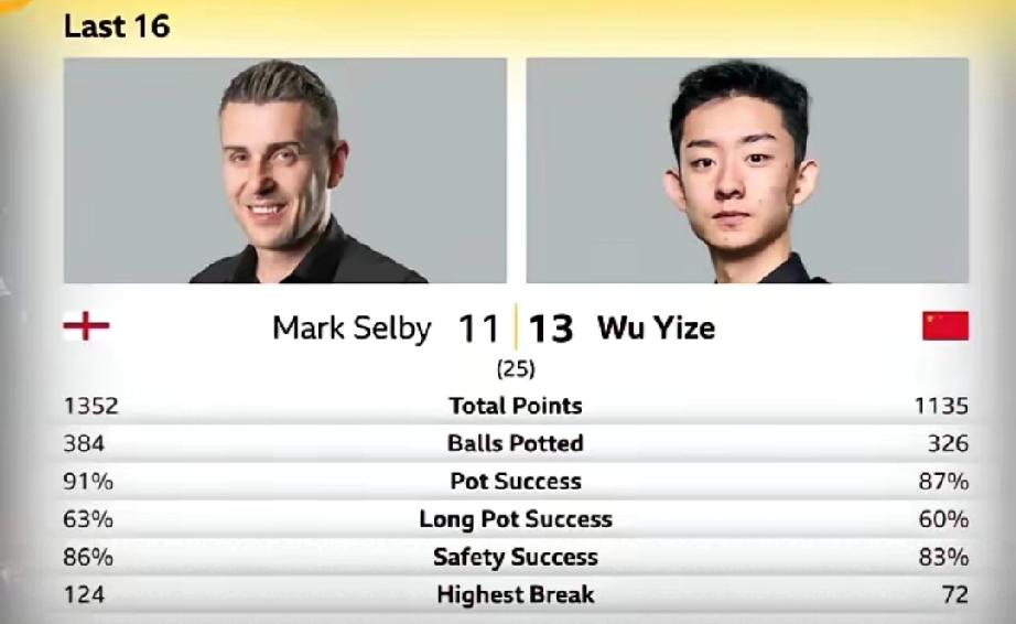就看数据真看不出来吴宜泽赢了,只能说塞尔比失误比吴宜泽更多